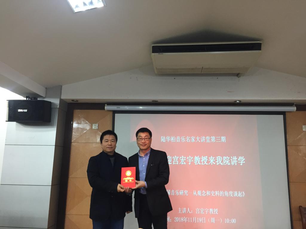 在讲座开始之前,康老师首先对本次讲座嘉宾宫宏宇老师进行了热情的介绍和欢迎,他表示:“宫老师是享誉国内外的关于中西音乐文化交流方面的专家,学术专著也在近年出版,如《来华西人与中西音乐交流》(浙江大学出版社、2017)、《海上乐事---上海开埠后西洋乐人、乐事考(1843-1910)》(上海音乐学院出版社、2017),中西音乐文化交流是中国音乐史学乃至整个中国音乐学十分重要的一个领域,多年来我们对这块领域的关注较为零星,前人有钱仁康、张前、陶亚兵、冯文慈等前辈学者在这个方面做了相应的研究。但从域外视角去关注中国音乐在海外的传播、互动、交流、认同、接受等,宫老师的研究可谓是最为集中、持续、品质最高、影响力也最广。我院陈永老师在《中国音乐学》第四期即将发表《中国近代音乐史的第三维度---评宫宏宇著<来华西人与中西音乐交流>》,该篇论文对宫老师的著作进行深入的评述。所以我们无论从学科角度或从中国音乐史学急需“补课”的角度来讲,宫老师此次讲座开展都是恰逢其时。”