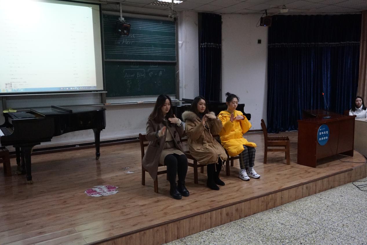 讲座最后,刘畅老师总结道:“希望大家都能从生活中发现音乐,享受音乐所带来的温暖与快乐。特别是音乐专业的同学们能够从生活中得到启发,在设计音乐课堂时多加入一些这样既贴近生活又生动有趣的课堂活动。”并以张思妤、戴心、韩雪儿三位同学为大家带来的身体打击表演结束了本次讲座。在场听众纷纷表示从这次讲座中受益匪浅。