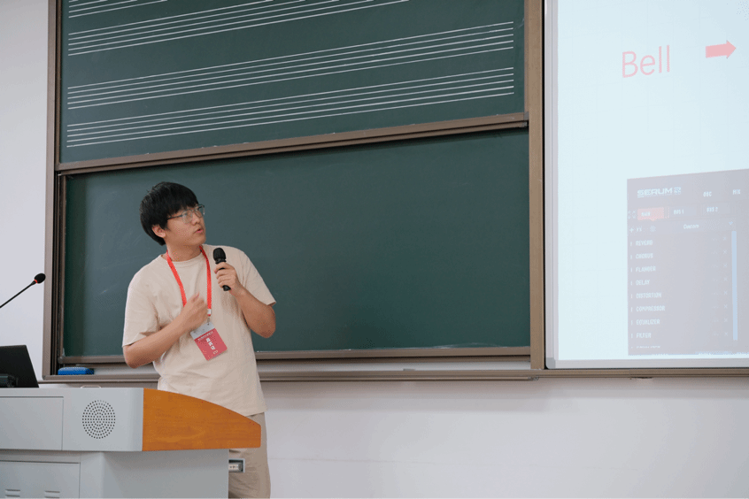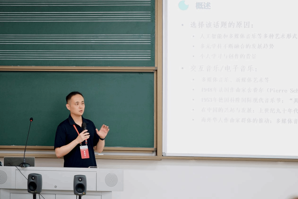 周政老师团队的讲座聚焦计算机音乐创作教学实践,以交互音乐创作和 MIDI音乐制作为具体案例展开深入阐述。从课程体系的构建到教学方法的创新,从学生作品的孵化到教学成果的转化,他们将交互音乐创作和 MIDI 音乐制作的理论知识与实践操作紧密结合,为学生打造了一个全新的音乐创作学习平台,打破了传统音乐创作中单一的表达方式,让音乐与科技深度融合,从而使音乐作品能够与听众产生更紧密的互动。