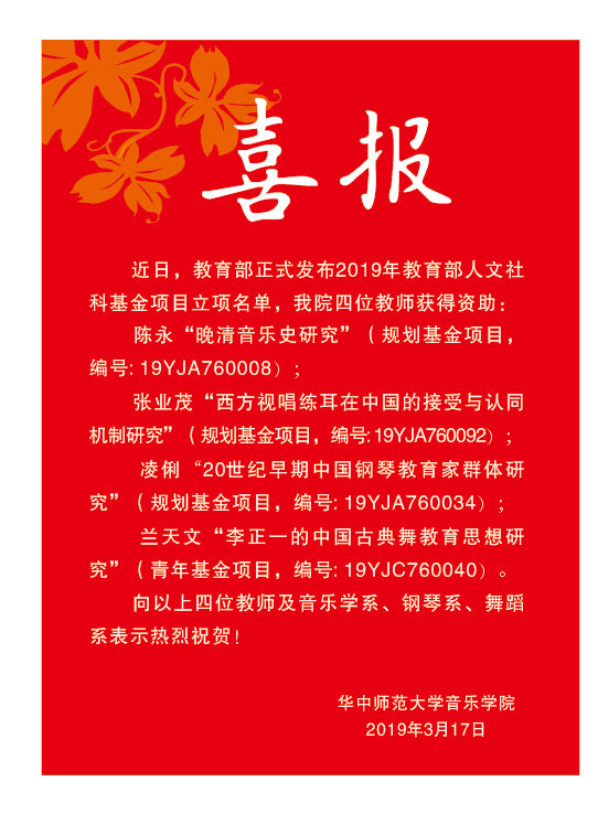 向以上四位教师及音乐学系、钢琴系、舞蹈系表示热烈祝贺!
