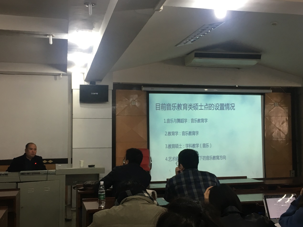 (综述:王海韵;摄影:陈思)2018年12月17日上午10:00,《我国音乐教育类专业学位硕士培养中存在的问题及解决策略》专题讲座于华中师范大学音乐学院323会议室顺利举行。本次讲座的主讲人为重庆师范大学音乐学院的齐江教授。齐江教授是中央音乐学院中国传统音乐理论专业硕士、上海音乐学院音乐人类学专业博士;现为重庆师范大学音乐学院教授、硕士研究生导师、音乐教育学硕士点学科带头人、音乐学系主任。