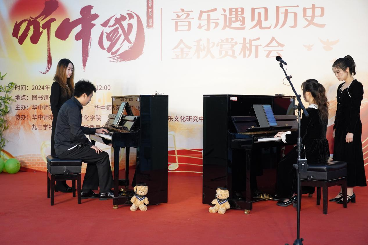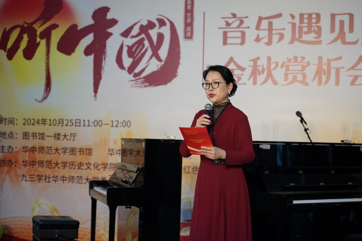2024年10月25日,以美育、艺术与阅读为主题的“听中国·音乐遇见历史”金秋赏析会在华中师范大学图书馆成功举办。通过钢琴演奏、小合唱以及跨学科讲述于一体的独特视角,展现了一百多年来的中国音乐与历史之美,同时开启了音乐与历史、美育与思政教育跨学科融合的新篇章。