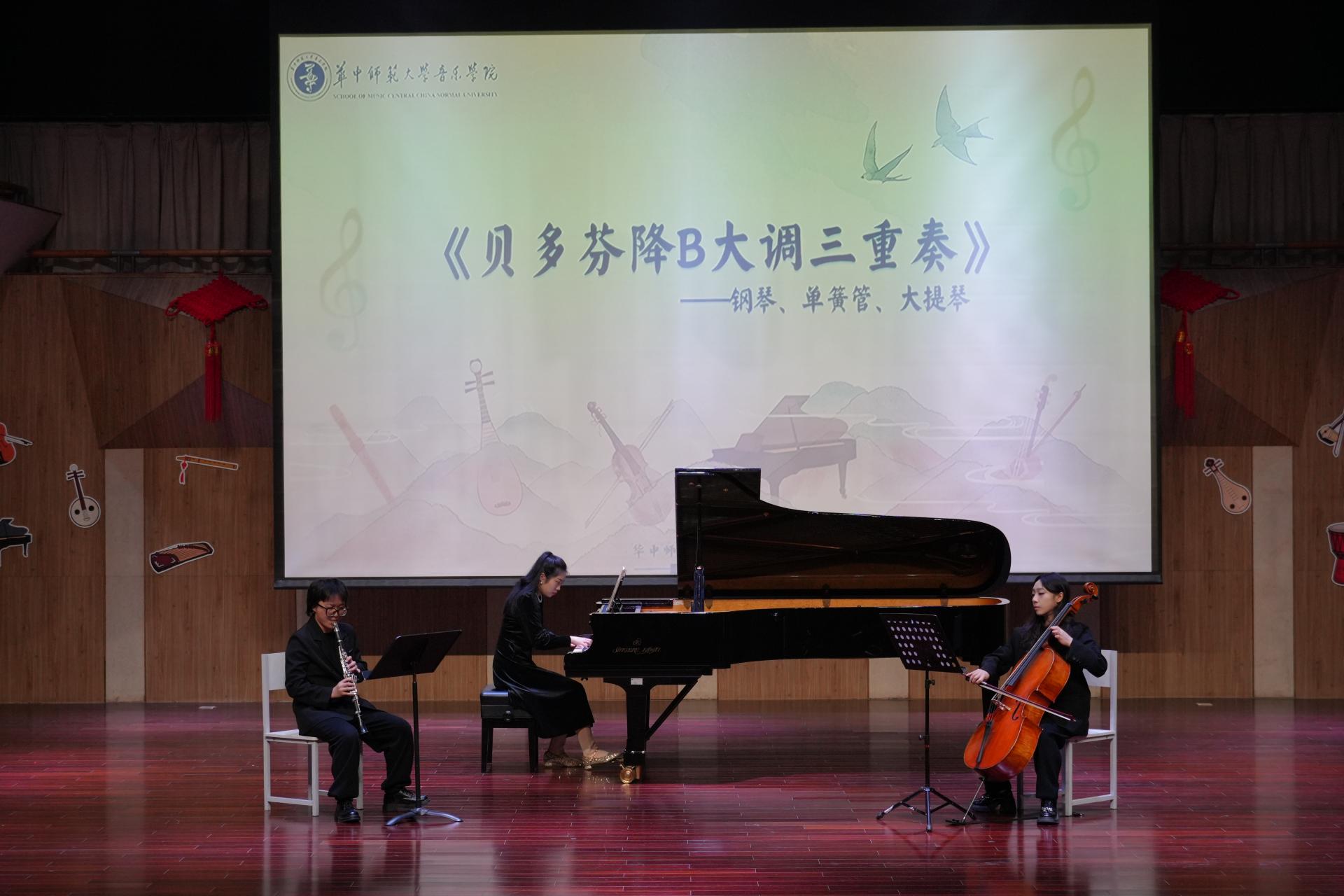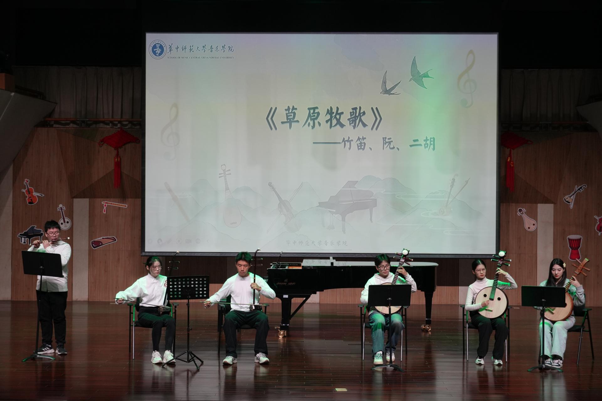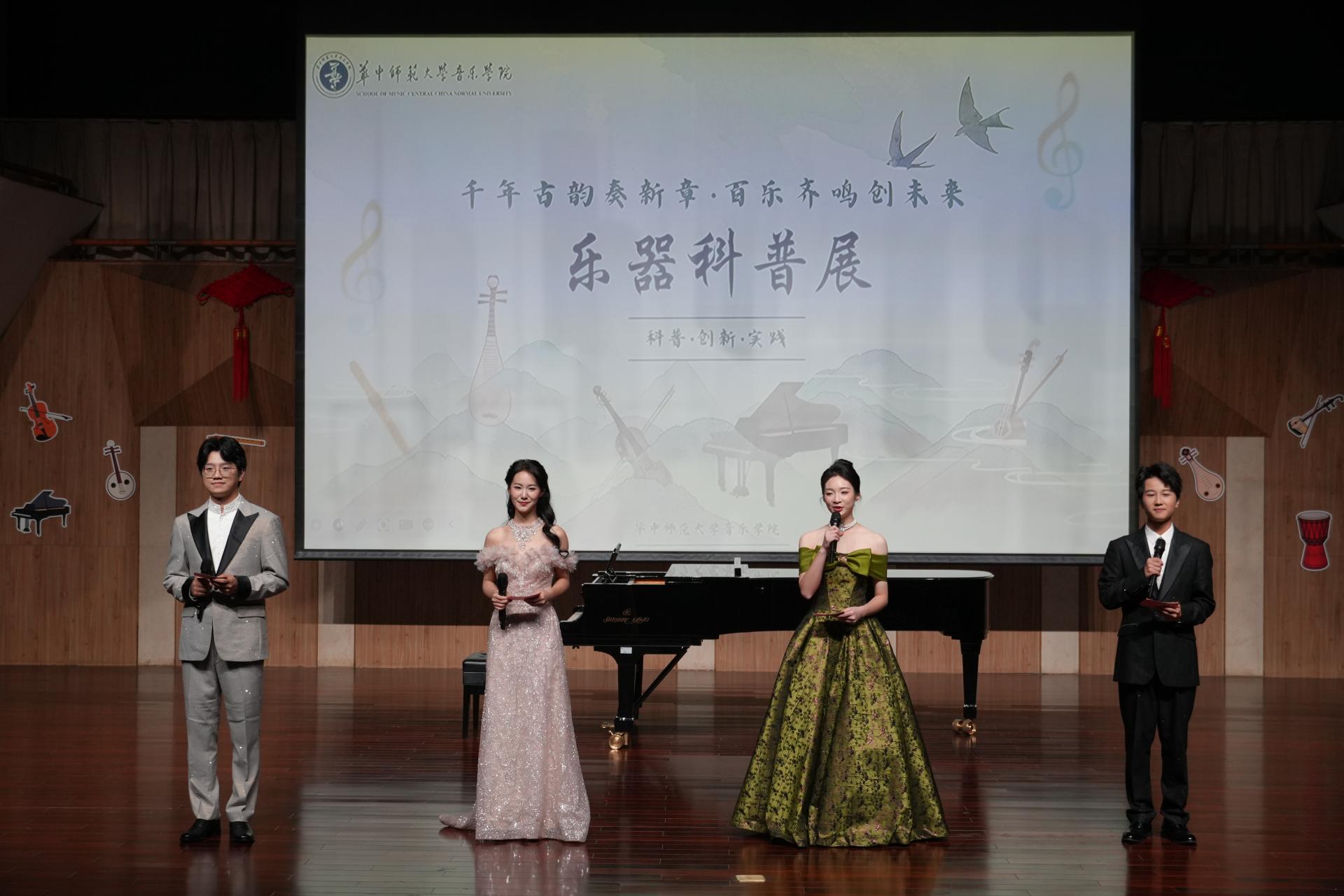 华中师范大学于11月23日19:30,在音乐厅隆重举办了第三十二届“创新杯”科技文化节大学生科普教育系列活动之——“千年古韵奏新章·百乐齐鸣创未来”乐器科普展音乐会。此次活动旨在丰富校园精神文化生活,推进高校美育工作,提升华师学子对音乐艺术的普及与鉴赏能力。本次活动由共青团华中师范大学委员会与共青团华中师范大学音乐学院委员会联合主办。