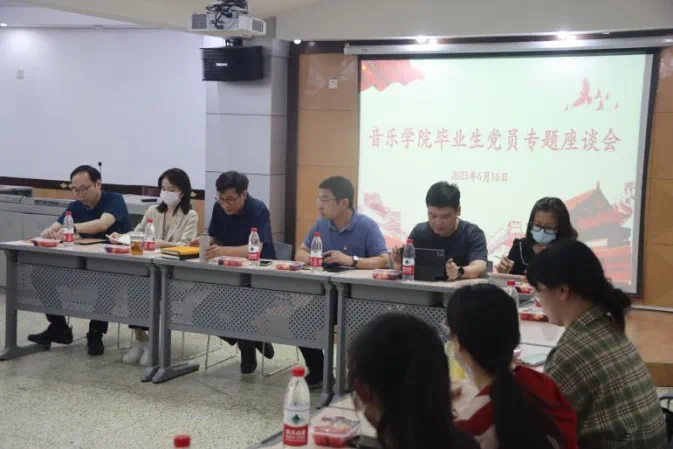 6月16日,学院在323会议室组织召开毕业生党员专题座谈会,学院党委书记梁伟、副书记陈晓刚、副院长张业茂、声乐系主任陈岭、钢琴系教师贺新春、音乐学系教师刘畅、音乐学系教师谭述晔、舞蹈系教师朱宇翔以及本、研毕业生党员代表参加座谈会。