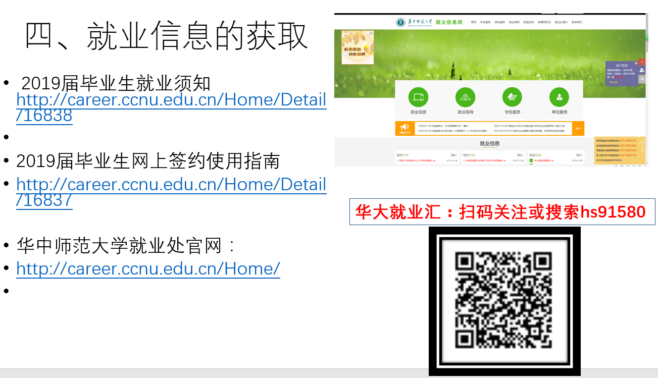 3、畅通就业信息渠道。吴老师向同学们介绍了就业处官网、就业处微信公众号以及就业网站的板块及功能,让大家对于学校就业系统及信息有了更为充分的了解。