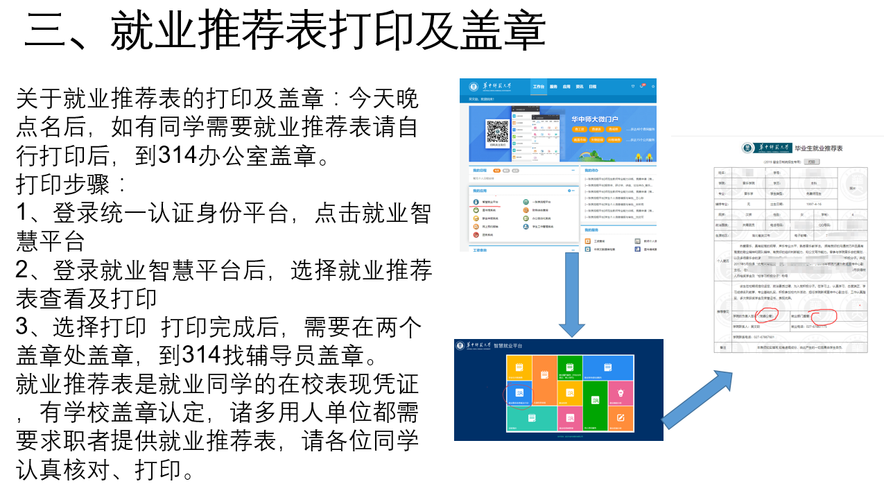 2、发放并讲解了《毕业生就业须知》。吴老师就《毕业生须知》材料,向同学们详细讲解了学校的就业政策,毕业生就业流程、网上签约流程、就业推荐表办理、报到证等、免费师范生就业相关事宜,让同学们对学校就业工作流程有了一定的了解。