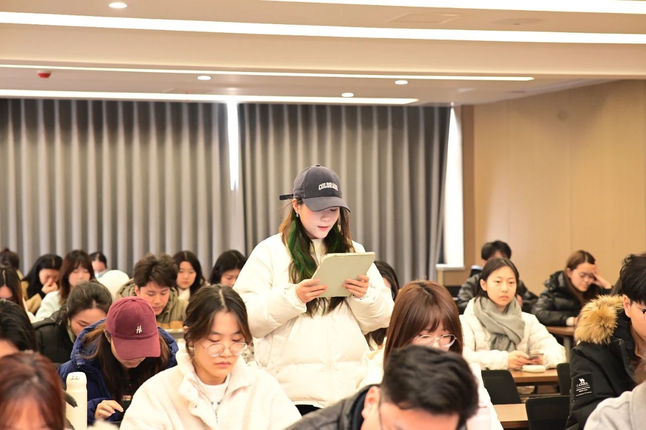 学生会主席团成员陈若岩、林隽如以《中国式现代化发展的具体呈现》为题作专题报告,带领广大学生骨干集体学习。陈若岩结合DeepSeek的迅猛发展、春晚人形机器人表演、可控核聚变技术等实例,深入剖析了2024年中国的飞速发展与时代潮流走向,呼吁我院学子立足自身专业,为学院学校及社会贡献青春力量。林隽如从春节档热门电影《哪吒2之魔童闹海》入手,探讨中华优秀传统艺术文化的传承与创新。