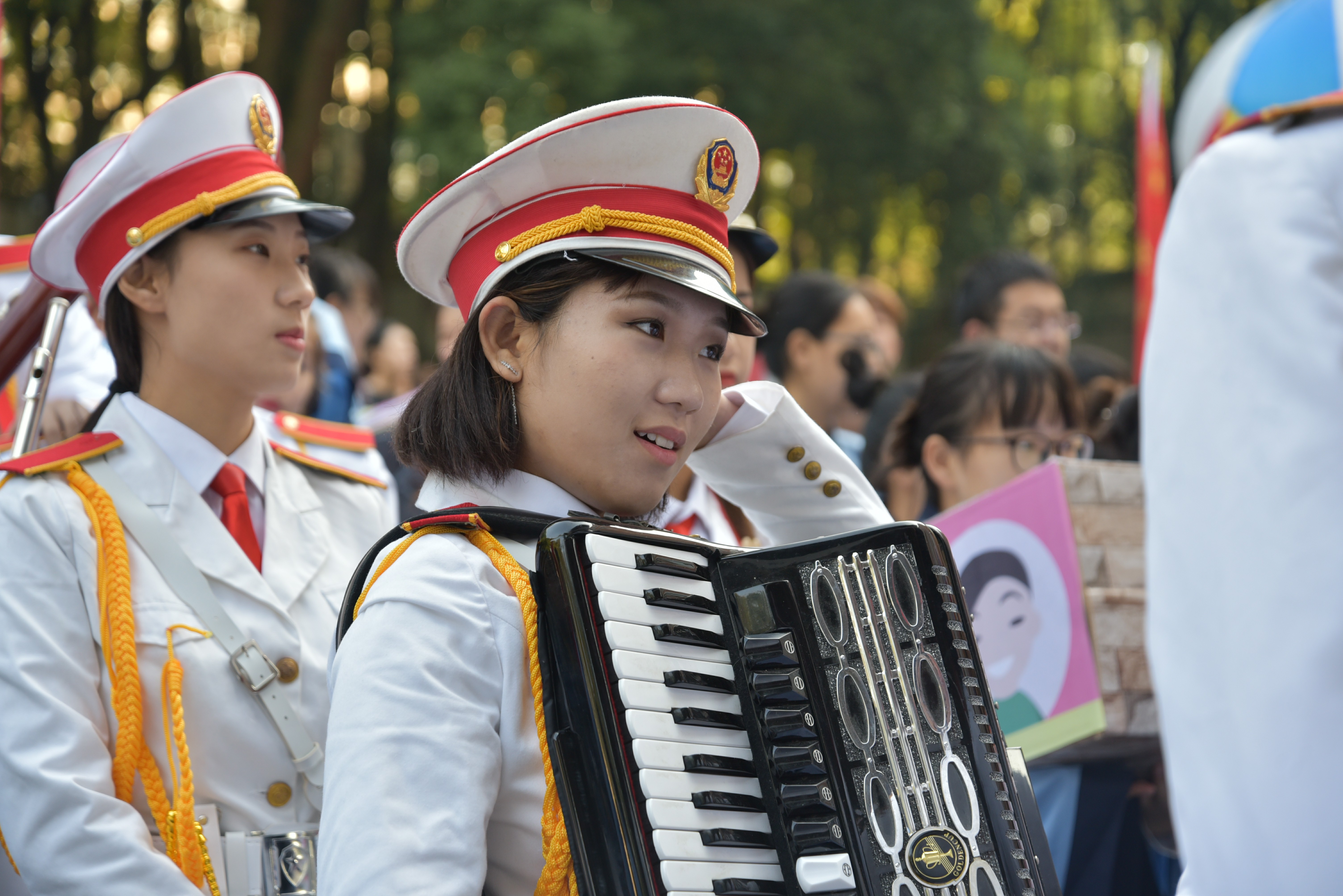 上午8:45音乐学院开始入场,学子们身姿矫健,步伐一致,迈向主席台。旗手是来自大三的屈一飞同学,来自音乐学院管弦乐团的各位同学,人手拿着乐器,迅速的变换队形。来自音院17级舞蹈班的同学,他们快速散开跳起舞蹈,神采飞扬。学子们开始齐奏《歌唱祖国》,悠扬的旋律缭绕整个主席台。星星之火,可以燎原,这是本次开场舞蹈元素的重要组成部分,同学们抱着各色乐器,奏出同一旋律,代表着音乐学院同学们的凝聚力,精彩表演,获得了台上台下的热烈掌声。