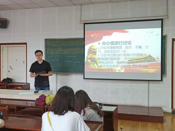 讨论结束后,李雨涵同志、曹筱勤同志以及王子铭同志上台,向大家分享了关于看完视频后的感受以及对于新时代青年大学生将来努力方向的相关看法,引起了在座各位党员同志的共鸣。