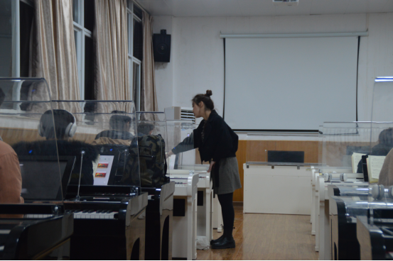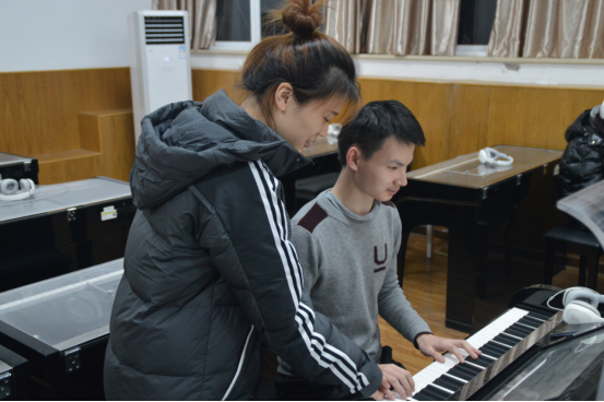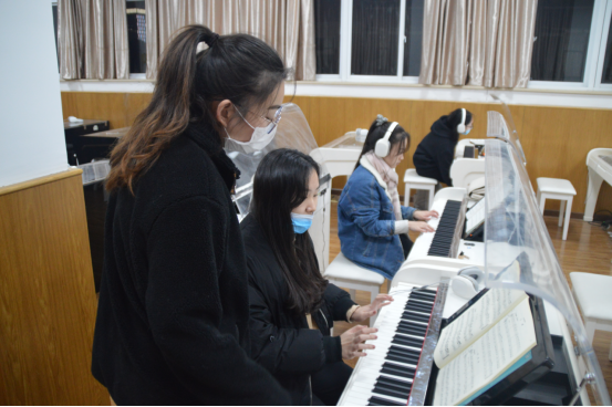 钢琴弹奏是音乐教师应该掌握的专业技能之一,在日常教育教学工作中起着重要的辅助作用,老师们根据每个人的特质改用不同的方法,言传身教,对此老师们在一边教拜厄的基础内容,一边给有需要视唱伴奏的同学,教伴奏内容以帮助同学们完成技能考核。