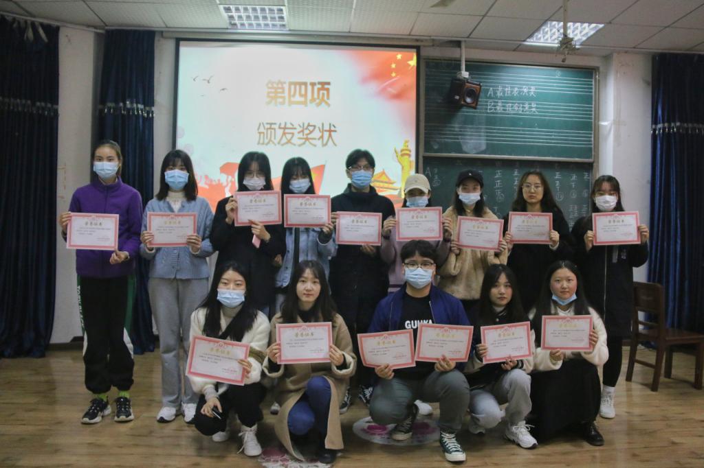 随后是第七组,他们全程专注严肃,他们的朗诵铿锵有力,伴随着美妙的钢琴和长笛声,以一种最诚挚的热情来歌颂在疫情期间最美的逆行者——白衣天使。第三个出场的小组是第三组——亿点点。以一点点经典语句“欢迎光临”作为开场创意十足,贴近生活。自编的可爱舞蹈和自制精良的短视频独居一格。第五组以闲聊的形式去从侧面解释了“凡尔赛”的内涵,颇具创新,令人眼前一亮;第六组则是模拟出光棍节晚会的现场,舞蹈、唱歌、还有情景剧等多元节目来体现网易云这一主题;第九组由一位同学创作剧本,这个剧本不仅展现出她“工具人”的亲身经历,更多地表现出她在遇到困难迎难而上的无惧精神。“Rapper or Reader”是第八组的同学以极具创新的策划模拟出的说唱海选现场节目,把每个选手的形象特征都演绎的淋漓尽致。第四组同学朗诵赞美祖国母亲,用钢琴伴奏和小提琴拉出美妙的歌声表达对祖国最诚挚的爱。演出完毕,观众对小组进行投票,选举最佳表演和最佳创意奖项。经过反复紧张的激烈角逐,汇报表演获得最佳表演奖的小组是第三组;获得最佳创意奖的小组是第八组。