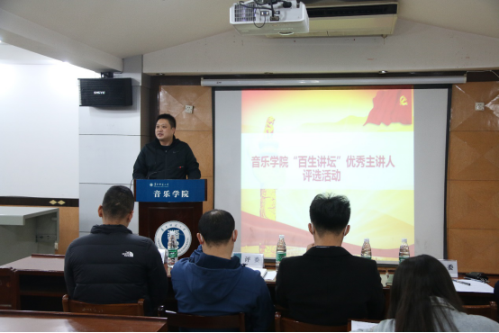 (通讯员:武梦瑶 董诗语)为贯彻习近平新时代中国特色社会主义思想,落实党的十九大精神,10月7日下午“百生讲坛”优秀主讲人评选活动在音乐学院323会议室成功举办。院党委副书记董志雄、团委书记付彪、辅导员吴文劼、李祥栋、王康、周霖作为本次活动评。院团委副书记刘雨婷主持活动。