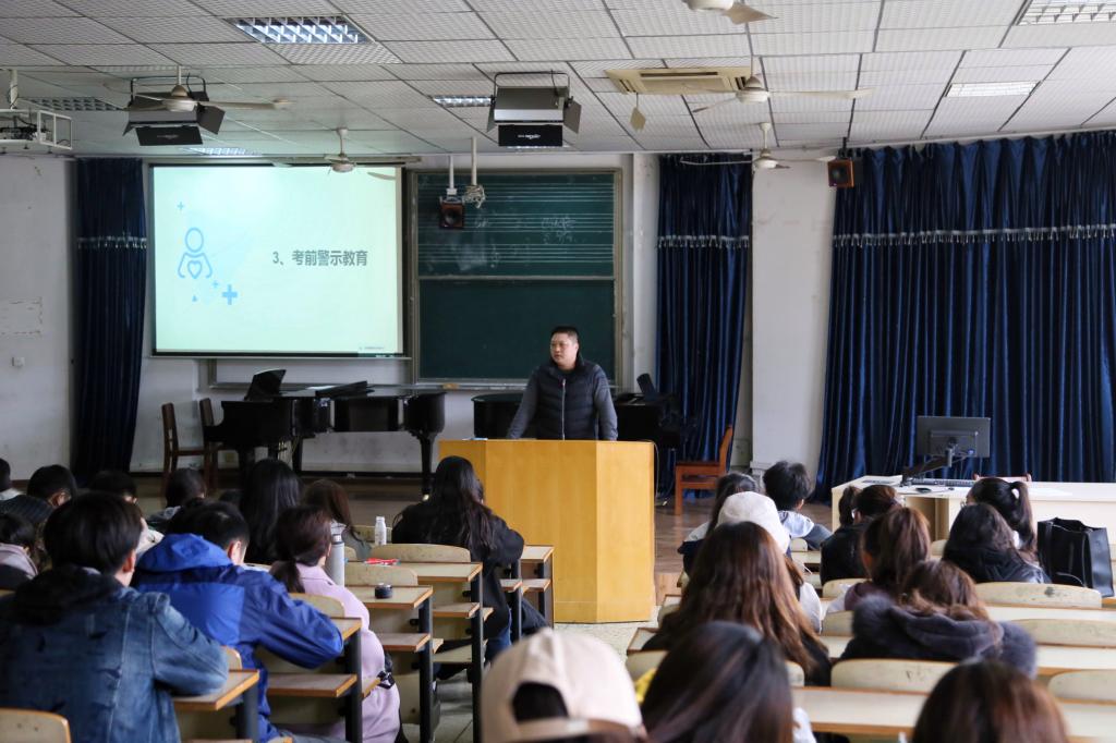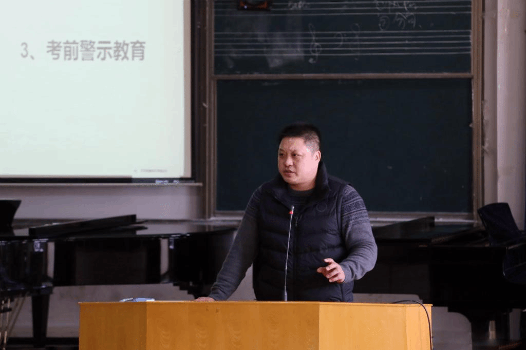 12月26日,音乐学院在427召开期末考试考前警示教育会议,学院党委副书记董志雄出席,辅导员吴文劼主持,2019级全体学生参加。
