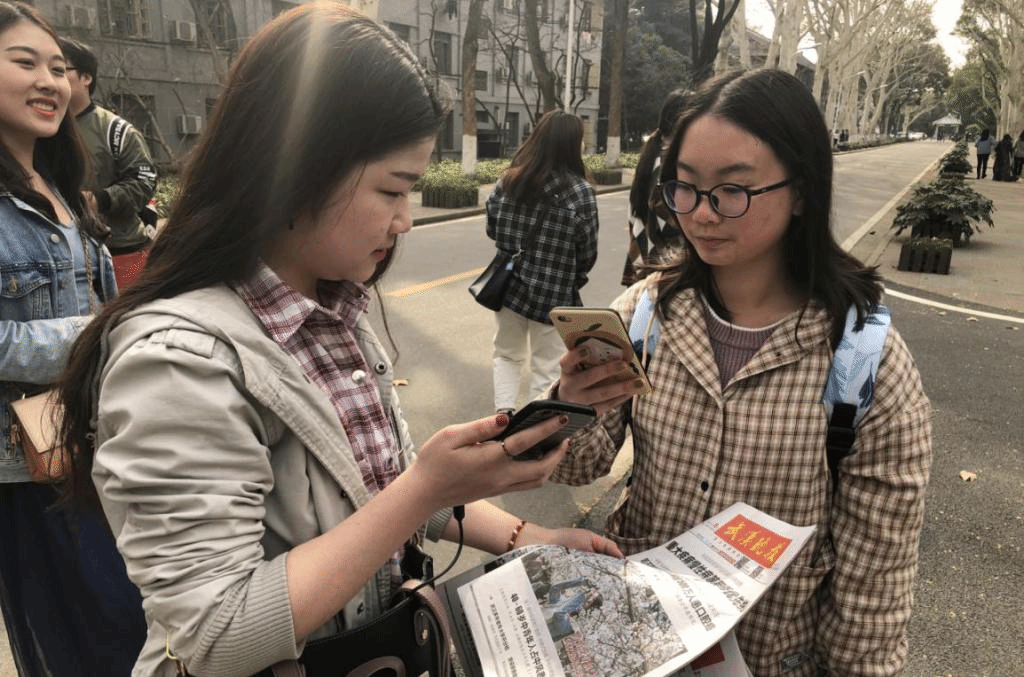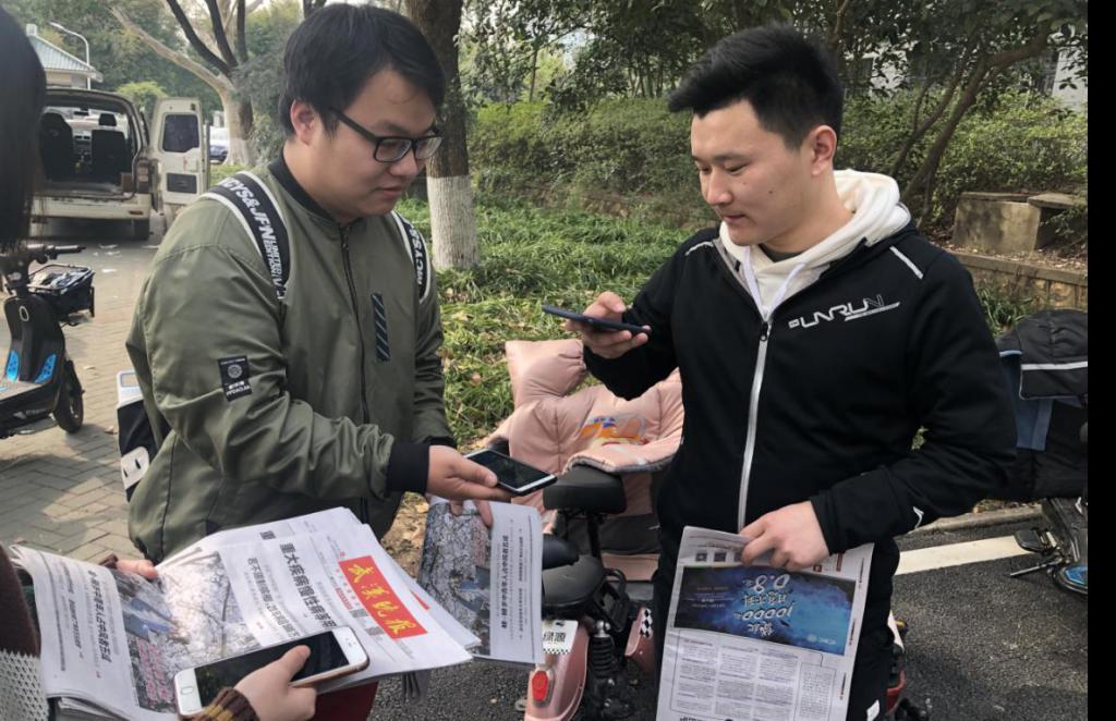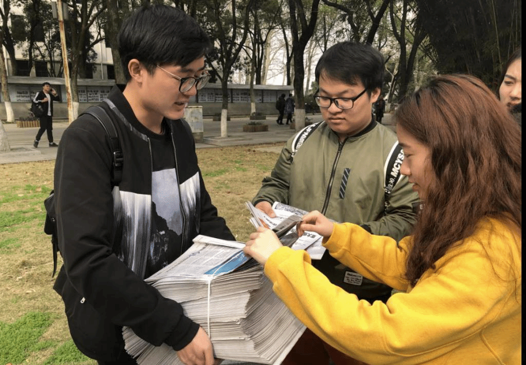 志愿者黄德儒同学卖报时遇到一位同学,他在听说本次卖报活动带有义卖性质后,立马额外捐款就转身离去,黄德儒反应过来后立马追上他将报纸递上,同学再三推辞才笑着将报纸收下。
