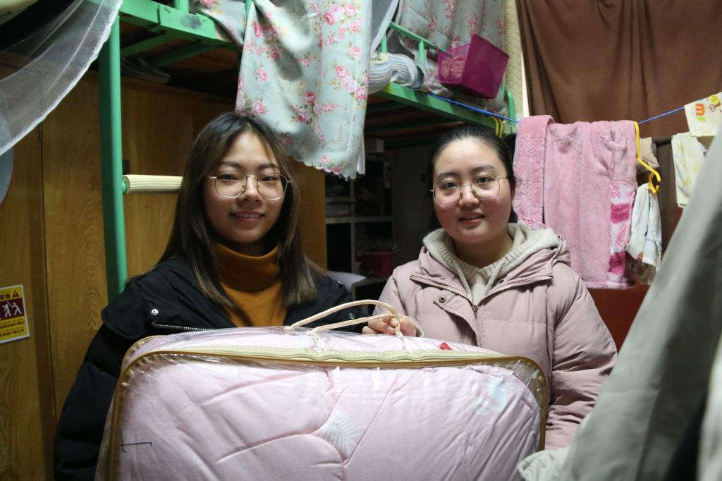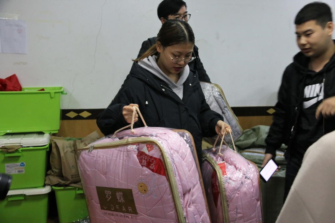 领取到棉被的同学们都很激动,孙震林同学高兴的表示被子送到的时间非常及时,同学们的关心让他感到很温暖,谢谢志愿者们的努力奉献。发放被子的志愿者张震同学表示,能够参与本次活动,为同学们送去温暖,她感到很开心。