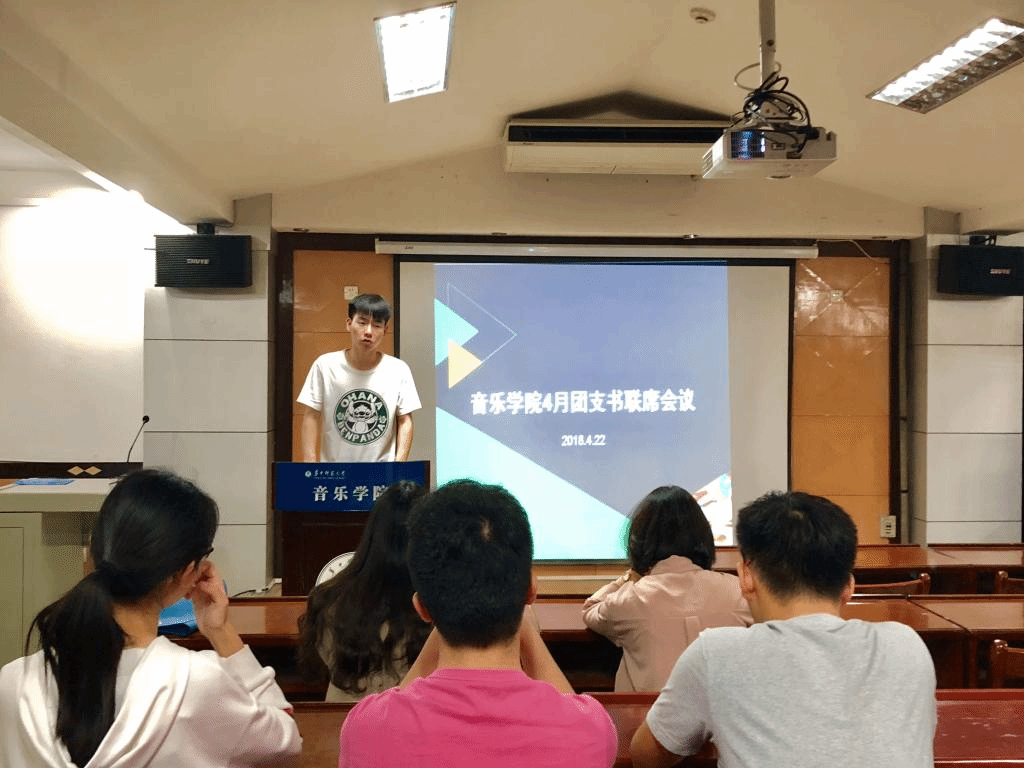 (通讯员:余芷璇)2018年4月22日晚八点半,华中师范大学音乐学院2018年4月份团支书联席会议在院323会议室如期举行。团委副书记冯望、学生会副主席成玄歌、组织部部长张雨晴以及2016、2017级各班的团支书参与了本次会议。