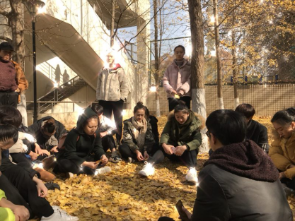 同学们用自己的眼睛去观察银杏树的形态,用自己的身体在一片金色的环境中即兴,把舞蹈从室内搬向了室外,让同学们感受良多。在活动最后团支书组织开展了“学习宣传贯彻落实党的十九大精神的知识竞答活动”的环节,大家抢答踊跃,氛围十分好。