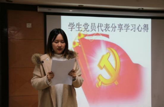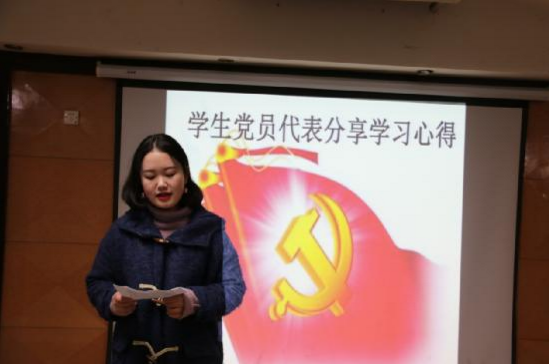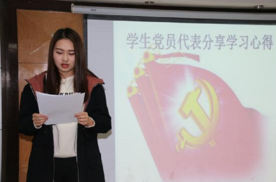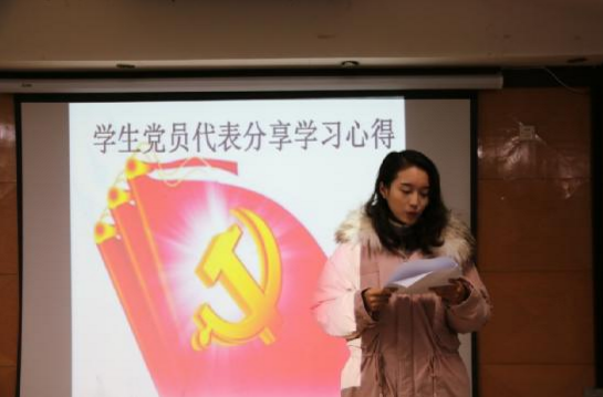“青年之字典,无困难之字;青年之口头,无障碍之语;惟知跃进,惟知雄飞,惟知本身自由之精神,奇僻之思想,锐敏之直觉,活泼之生命,以创造环境,征服历史。”在发言环节中,党员丁同同学说到,作为一名学生党员,谈到肩负的责任感和使命感。党员代表李思洁更将十九大报告的会议精神与本专业的学习相结合,进一步思考如何把专业层面上的所知所感结合到实际生活中去,并加以运用解决问题。作为一名学生党员,更应该信念在心,勇往直前,行稳致远。