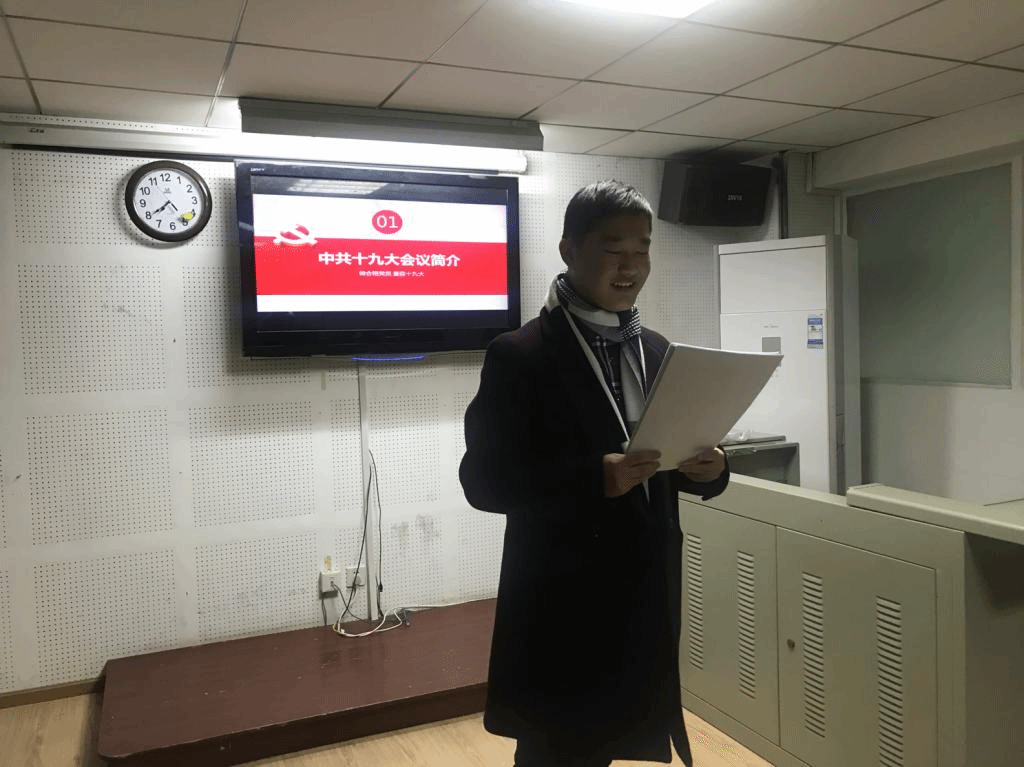 第一个环节是贯彻十九大精神,由团支书奚佳玥带领支部成员复习十九大召开发布的内容并进一步学习十九大精神,通过播放网络视频,提升了学习内容的趣味性,同学们认真学习十九大精神的主要内容,并积极参与本次团日活动。