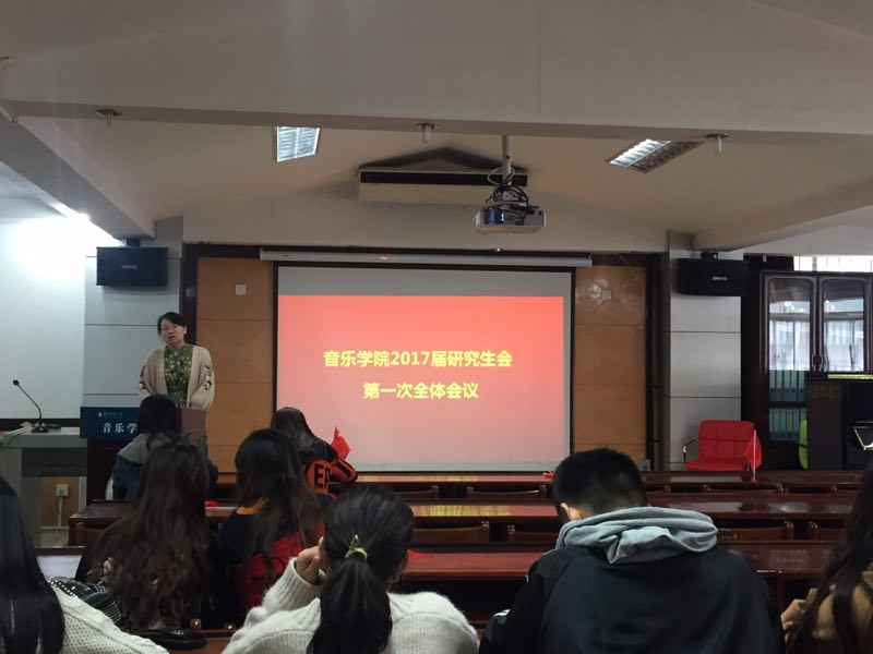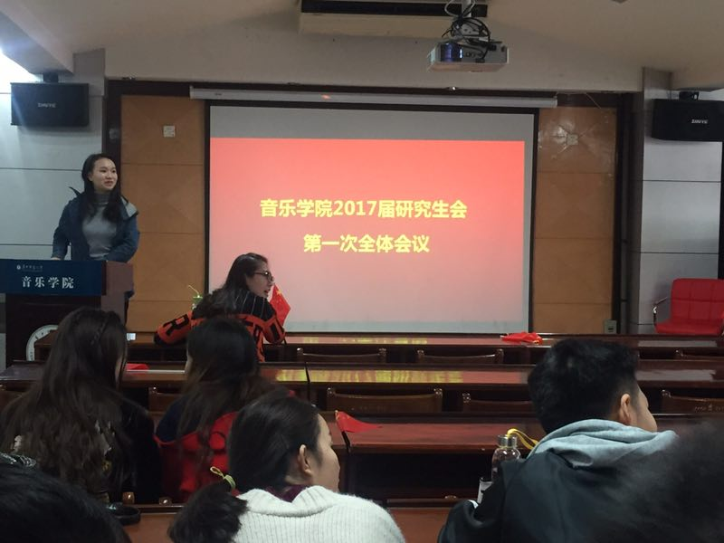 2017年10月19日中午12:30于华中师范大学音乐学院323会议室召开研究生的全体会议。本次会议由万红霞老师主持,参与人员为全体研究生会的学生干部。万老师在会议中主要讲了三方面内容。
