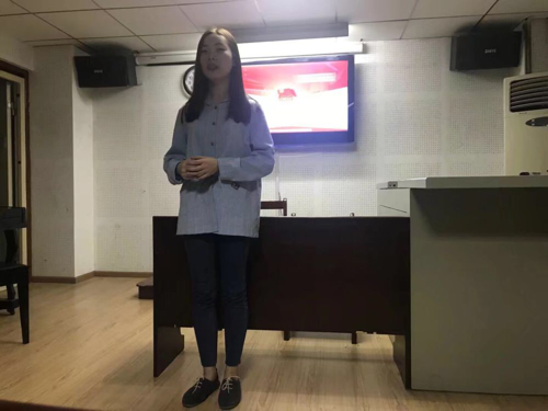 活动的最后,由团支书奚佳玥进行总结发言。她表示我们作为一名共青团员,要时刻守本分,做本职。要求树立正确的价值观,多学习他人优秀的品质来完善自身。通过学习“十九大”习总书记的思想来不断充实自己的精神层面和政治意识。