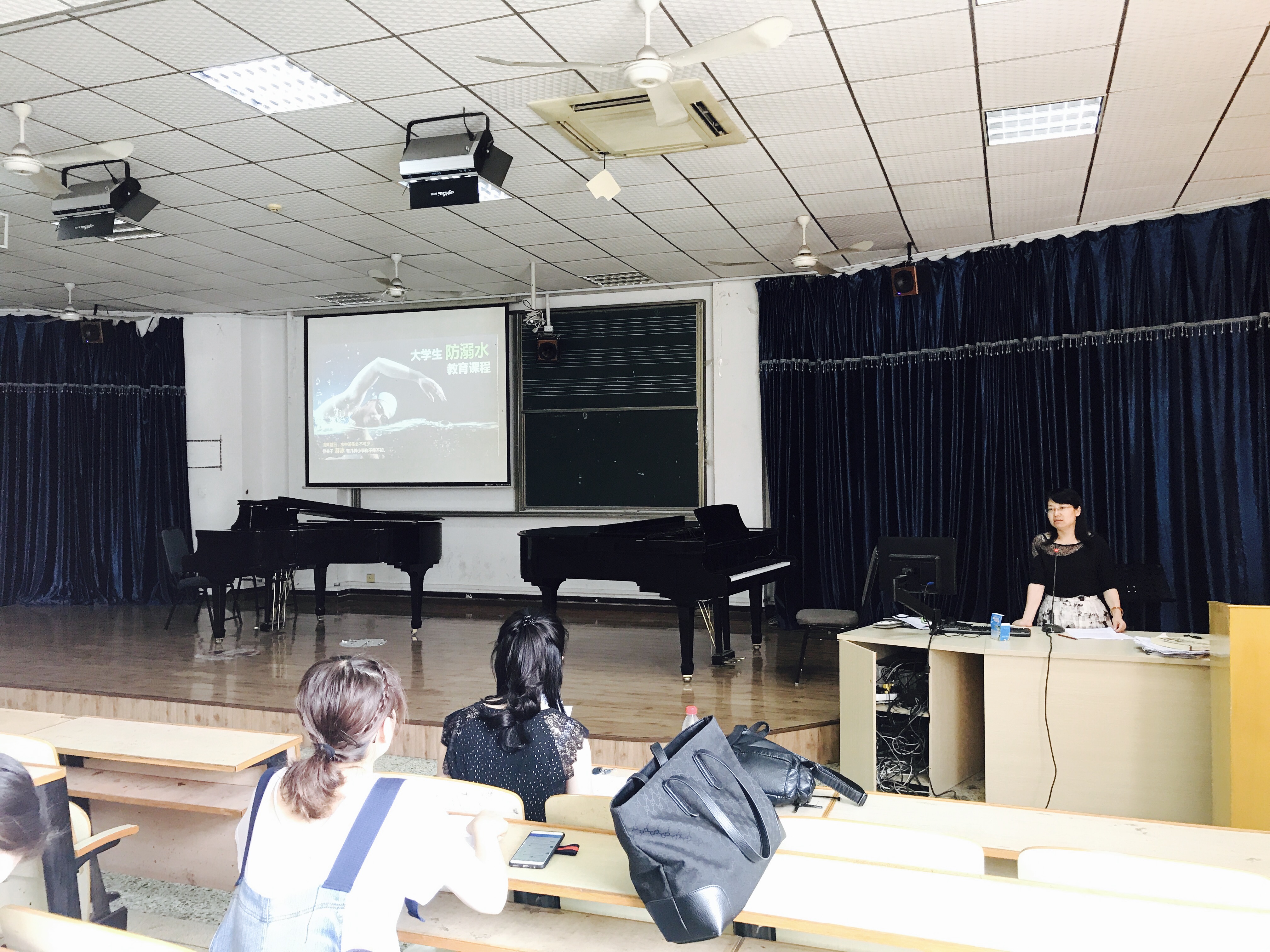 接下来,万老师就“游泳前、游泳时、游泳后”三个方面,给大家详细上了一堂生动的《大学生防溺水教育课程》。