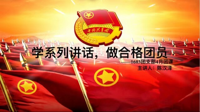 陈汉泽说道:当你所在的班级团队需要你时,你选择坚定不移地顶上去。这就是较高的思想政治觉悟。当班风,学风下滑时,你作为班级里重要的一员,同样需要你站出来引领。 课前三分钟,你有没有主动的背书,看书?身为一名团员,应该具备一种"我是团员我光荣"的骄傲自豪感。所以我们必须首先立志做一名合格的团员。这个要求也是我们今后努力的方向。