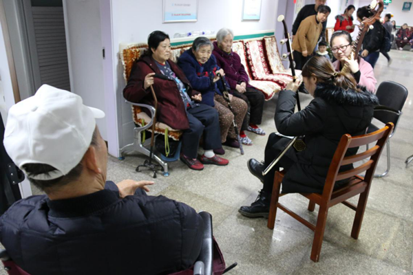 本次团日活动组织大家为爷爷奶奶表演节目为主题展开,首先由班长成玄歌同学应爷爷的喜爱演奏了一首古曲《十面埋伏》,此曲虽然有战争的紧张气氛但韵味十足,爷爷奶奶们连声叫好,随后又演奏了许多耳熟能详的琵琶曲,整个敬老院的气氛都被悠扬的旋律给带动起来。演奏完毕后采访了以为听得特别起劲的老爷爷,老爷爷说他今年80高寿了,以前做的秘书工作,由于40多岁时一场车祸造成下半身瘫痪,就一直靠着轮椅过日子,行动都特别不方便,所以在家的时候很喜欢听曲,这些曲子他都听过,都是他们年代最好听的歌,如今再听感觉特别好,熟悉的旋律心里听得特别舒坦。