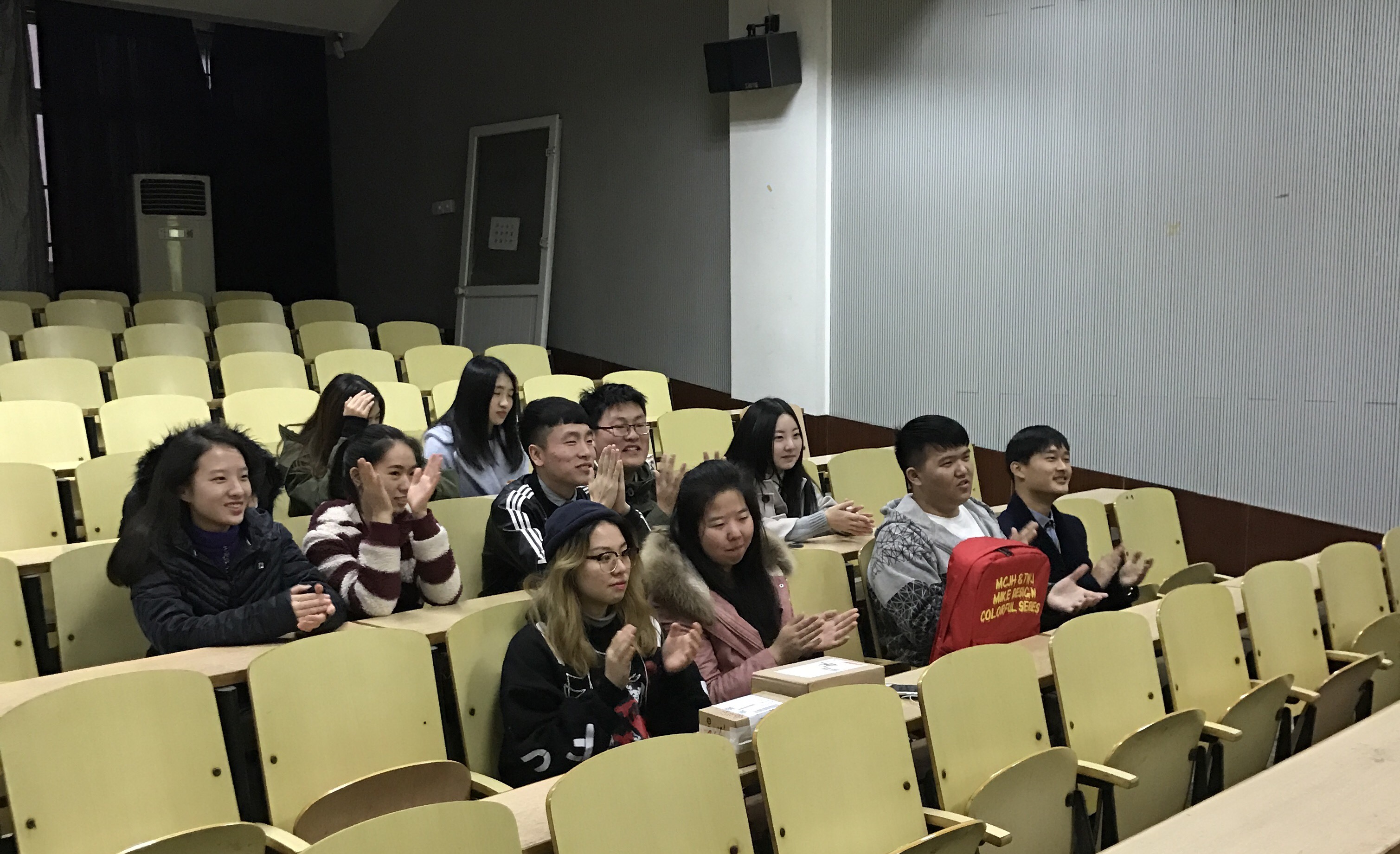 在短暂的休息时间内,主持人组织大家进行了一场短暂又有趣的游戏——“你演我猜”。第一个同学将主持人提供的词语用肢体表达给下一个同学,依次传递到最后一个同学,最后由同学将得到的词语说出来。游戏进行的十分顺利,气氛十分融洽,也提高了同学们之间的友情,促进了集体之间的团结。