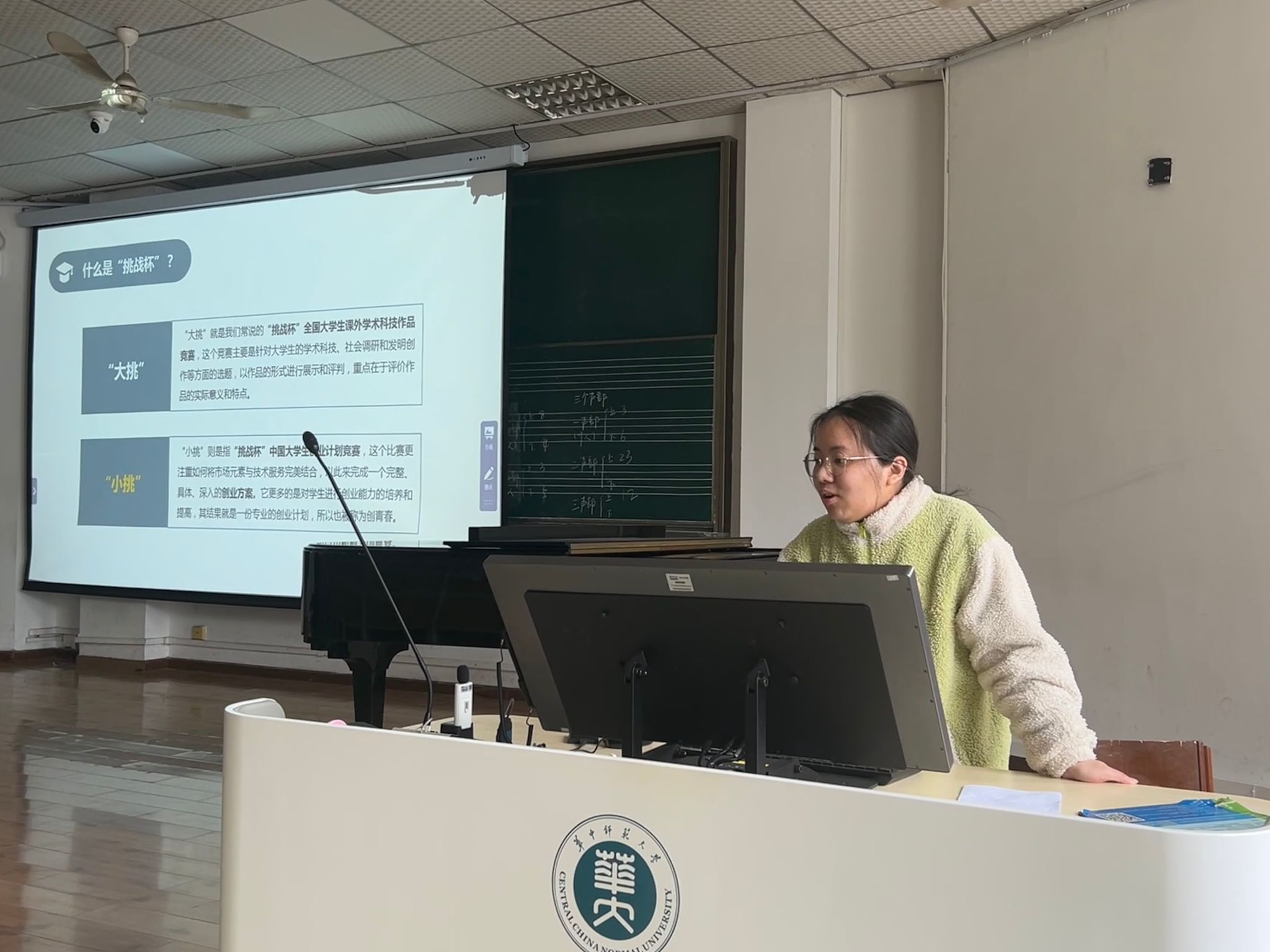 中午11:40在学院427教室开展2024级研究生创新创业主题班会。会议邀请学院科创实践部负责人孙文梓系统解析“挑战杯”全国大学生系列科技学术竞赛的参赛流程与备赛策略,结合音乐学科特色,重点推介艺术与科技融合类创新项目申报方向。通过剖析往届获奖案例,鼓励大家打破专业壁垒,组建跨学科团队,善用学校创业孵化平台资源。