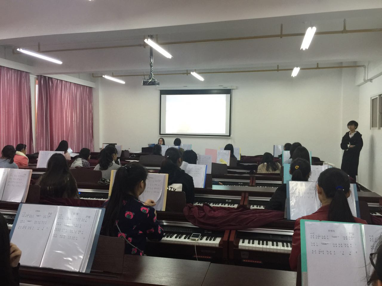 石牌岭中学一共有5名同学实习,分别是组长刘派,组员赵雨歆、程佳昕、潘晓莹、罗侨方。她们与石牌岭中学的社会文化艺术专业的学生共同度过这两个月的快乐时光。其中刘派和赵雨歆负责钢琴课的教学,程佳昕负责视唱课的教学,罗侨方和潘晓莹同学则负责声乐课的教学。