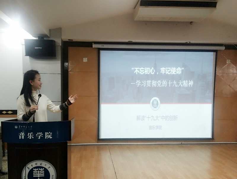 (新闻:徐筱园 摄影:陈文鹭)2017年11月24日(星期五)下午14点30分,全体音乐学院研究生在音乐学院104教室展开关于十九大主题宣讲会活动,此次活动由研究生辅导员万红霞老师主持进行。
