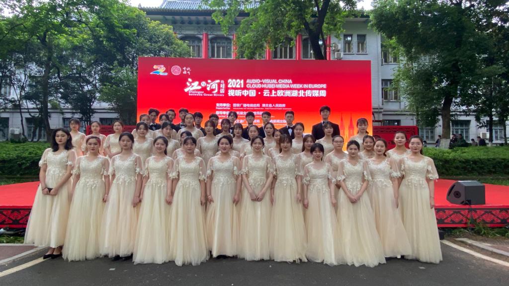 4月28日下午,由湖北省广播电视局、湖北省新闻出版局主办的“江与河的对话——2021视听中国·云上欧洲湖北传媒周开幕式活动”在华中师范大学成功举行。此次活动,我院学子在节目《锦绣长江欢乐颂》编钟交响合唱中,携手湖北省歌剧舞剧院、华师附小共同演绎了一首中西方文化相交融的壮美山河之歌。