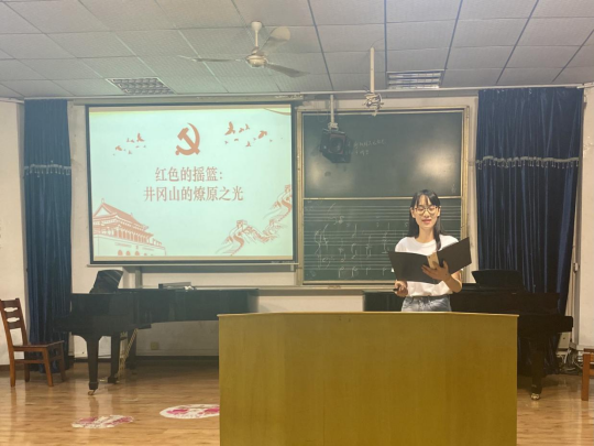 在颜瑜声情并茂地介绍下,同学们了解到井冈山精神的起源是以毛泽东为代表的中国共产党人,在湘赣边界秋收起义受到挫折后,毅然引兵井冈山,开启了“农村包围城市,武装夺取政权”的中国革命新道路。而井冈山道路的开辟,正是中国新民主主义革命的开端,也是中国共产党人创立的革命精神的开端,从而将坚定执着追理想、实事求是闯新路、艰苦奋斗攻难关、依靠群众求胜利为科学内涵的井冈山精神从开辟到一直传扬至今。