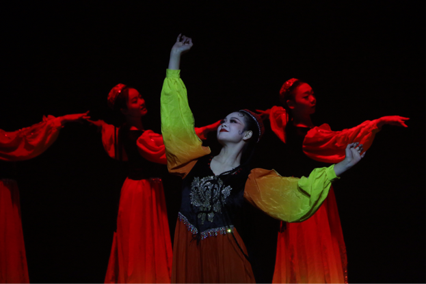 在祖国的大西北,有一片神奇广袤的土地,它美丽富饶,是举世闻名的歌舞之乡。那里的人民热情、好客,那里的姑娘能歌善舞。由朱宇翔、姑力扎娜老师编导,舞蹈系18级女生表演的《达坂城的姑娘》描绘的就是这样的一群人。该作品首演于桂子山音乐节舞蹈系原创作品专场。