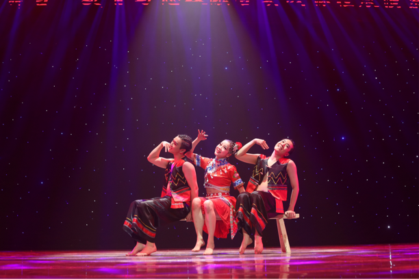 夕阳落山岗,土阿妹把歌唱,阿妹生的真俊俏,好似阿哥心里的花!这是由李鸣曦、于璐老师编导,梅佳怡、唐心澍、叶俊杰所表演的三人舞《抢板凳》中所呈现的场景,阿妹、阿哥多变的表情,多转的剧情把民族青年之前青涩美好的爱情体现得淋漓尽致,该作品曾获第三届湖北舞蹈金凤奖作品二等奖。