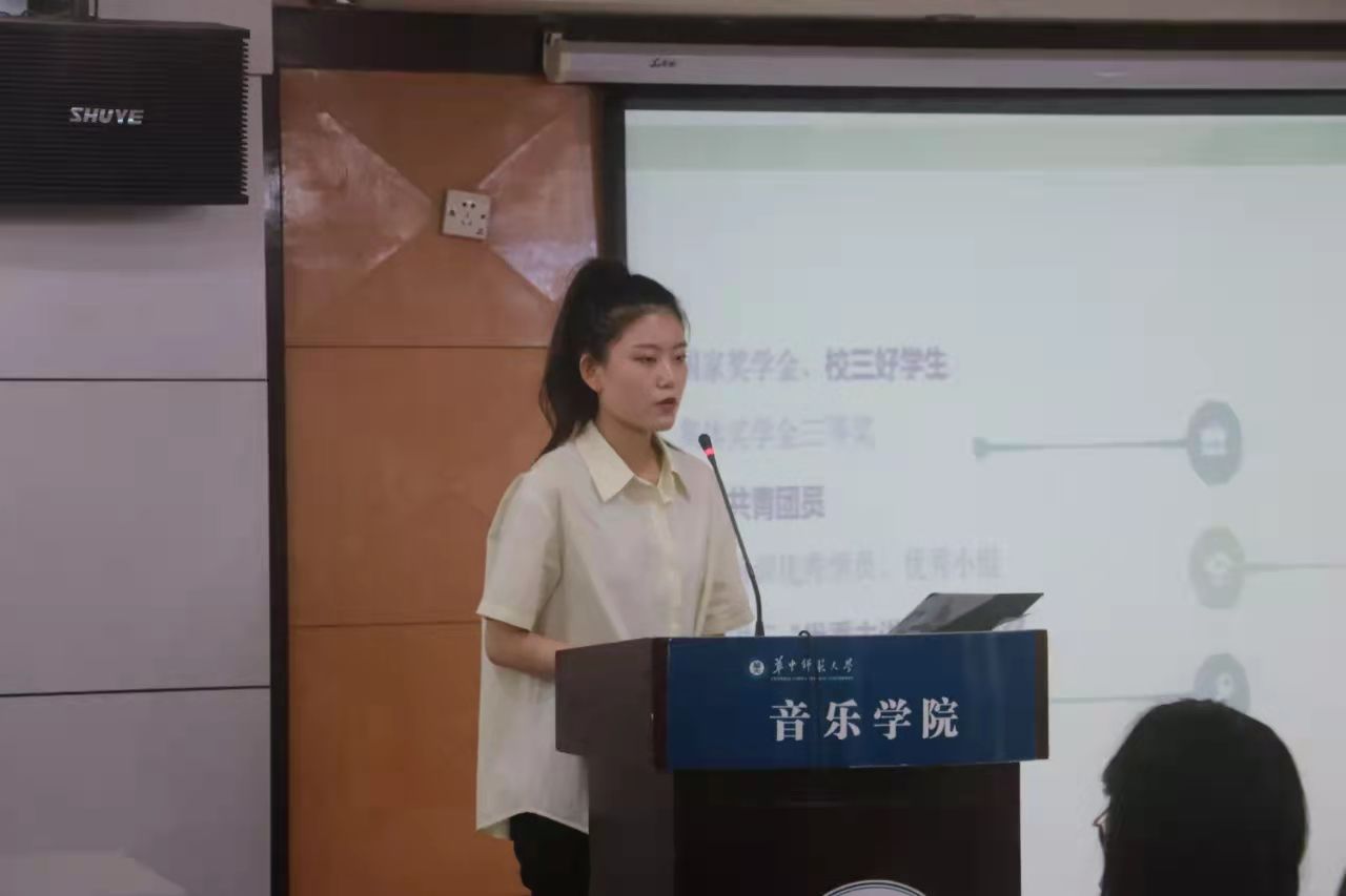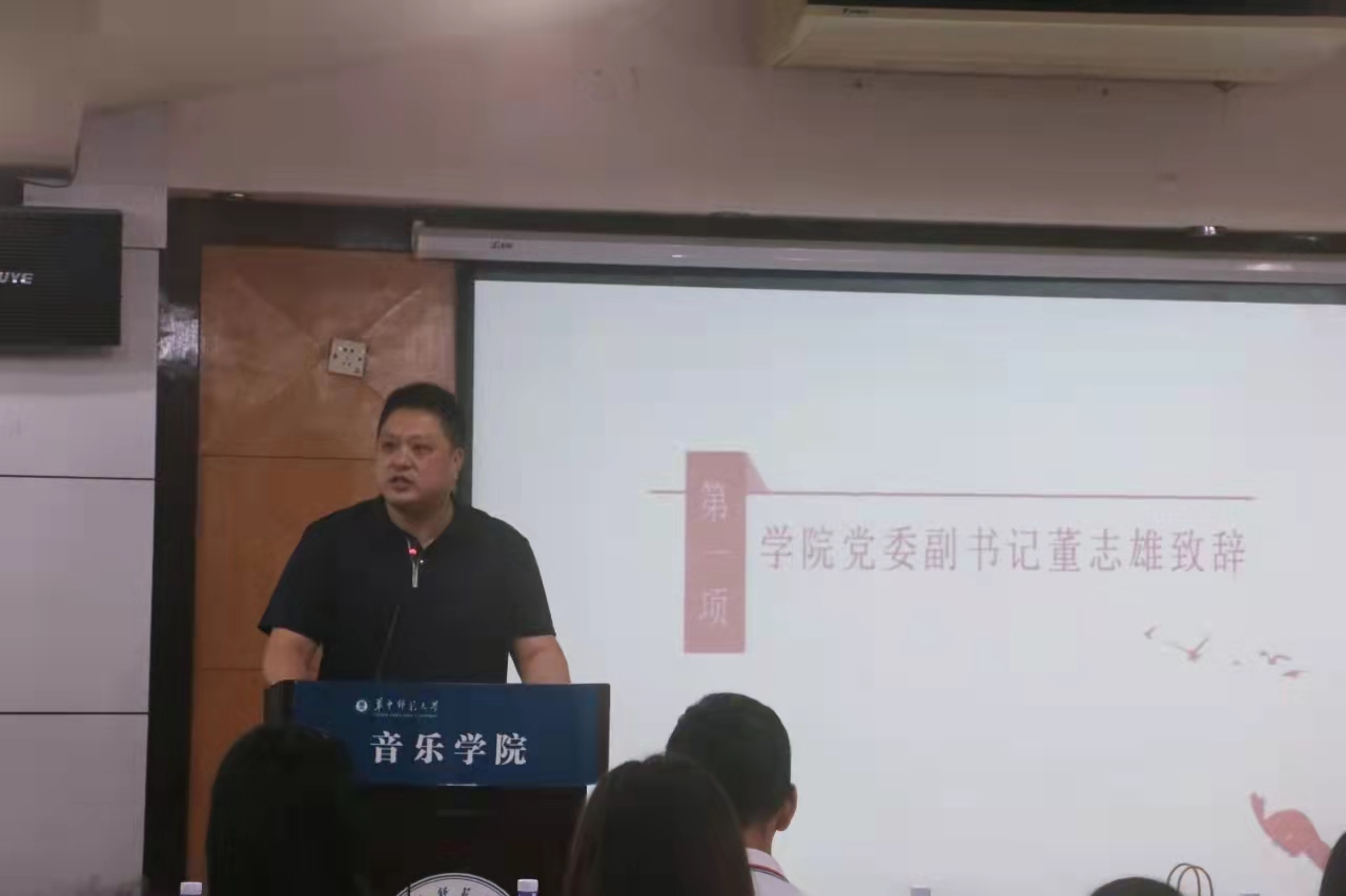 大会第一项,由学院党委副书记董志雄致辞,董书记首先对在座的学生干部表达了充分的肯定,对大家的真诚付出表达了感谢。并对大家以后的工作提出了三点要求。第一点就是音乐学院的学生干部的定位,要是一专多能型人才,要有五项全能综合能力和专业素质。第二点董书记提出“德是第一位”,同时学生干部还要拥有出色的实践能力、综合育人能力、自主发展能力,在学生工作中,可以收获更多的综合能力。第三点是做学生干部一定要有所获,“党的宗旨是全心全意为人民服务”,作为我们的学生干部,一定要为身边同学服务,一定要有爱。