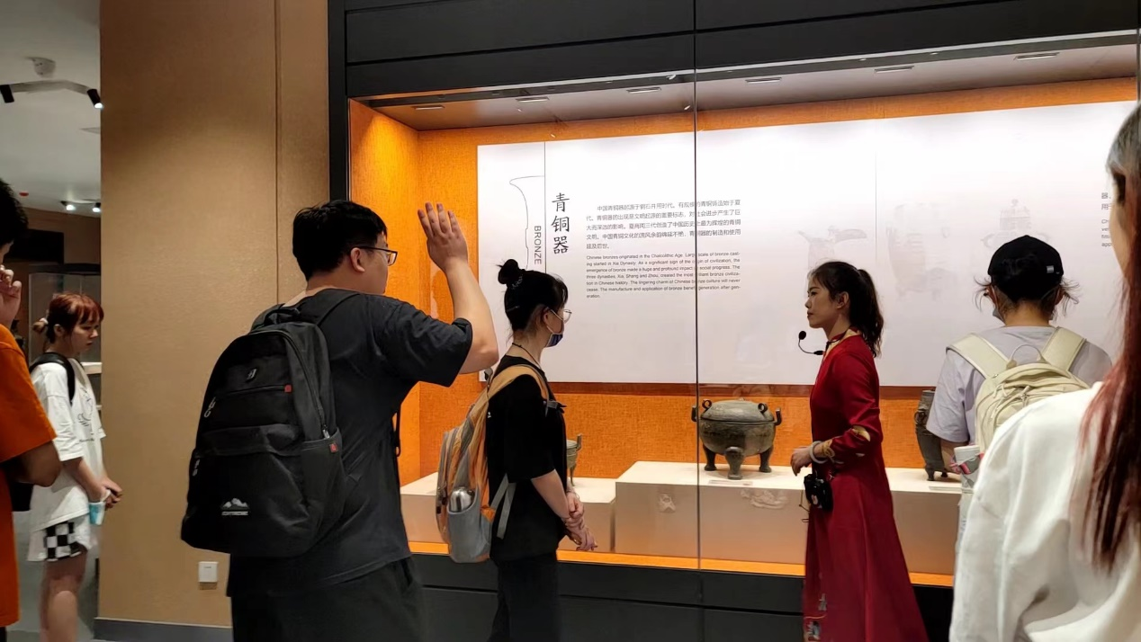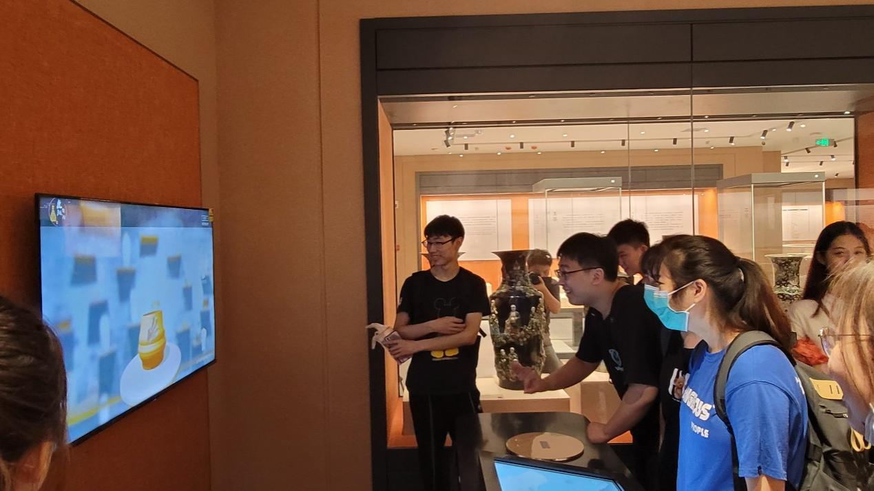在讲解员的带领下,同学们先后参观了器物珍藏厅、钱基博捐赠厅和书画珍藏厅,通过图文展板、虚拟场景体验等多种形式了解文物蕴含的文化内涵和时代价值,感受其艺术与魅力。