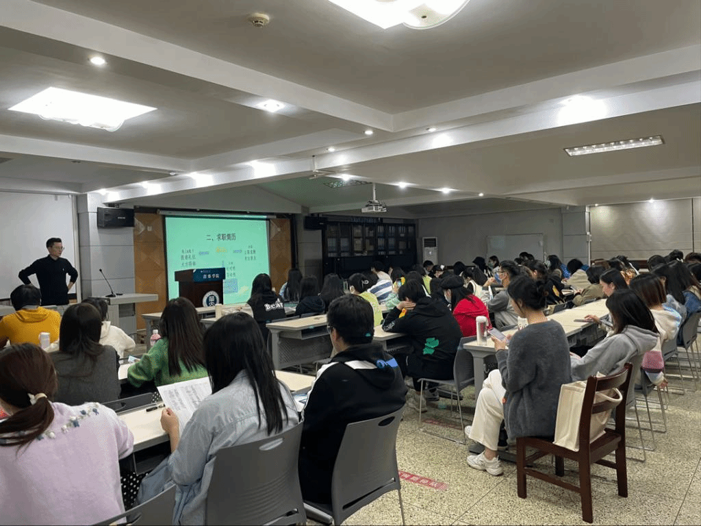 最后,陈老师提醒同学们在求职过程中要坚持“四要一不”,即要端正心态、要注意身体、要寻求支援、要解决后顾之忧以及不要在局限于一个职位。陈老师指出,端正心态,把每次应聘求职当做一场修心和旅行,把考试当做出门散心。在保证身体健康的状况下积极进取,与朋友相互扶持、共享信息,在收集到众多求职渠道后,要随机应变,接受现实岗位与理想岗位的差距,提高适应能力。陈老师强调求职的路没有捷径可走,凡事都需要多准备、多练习。