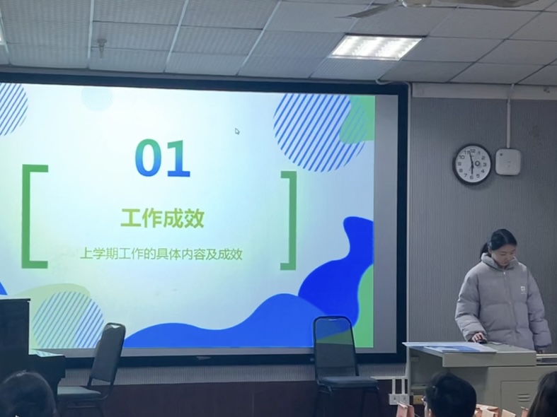 大会第一项,研会主席团成员王蓉对本学期研会工作进行总结汇报,在过去的一学期中,我院研究生会在院党委领导、院团委和校研会具体指导下,积极发挥研会“桥梁纽带”作用,在组织建设、宣传工作、学术活动、生活服务及其他方面开展多项工作,肯定了上学期各项工作所取得的圆满成果,并提出加以改进之处。