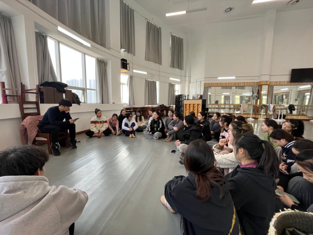 班主任于璐对班级专场演出的相关事宜进行指导与安排,包括专场主题、内容、节目形式和时间等,同学们提出自己的想法,与老师展开积极地讨论。