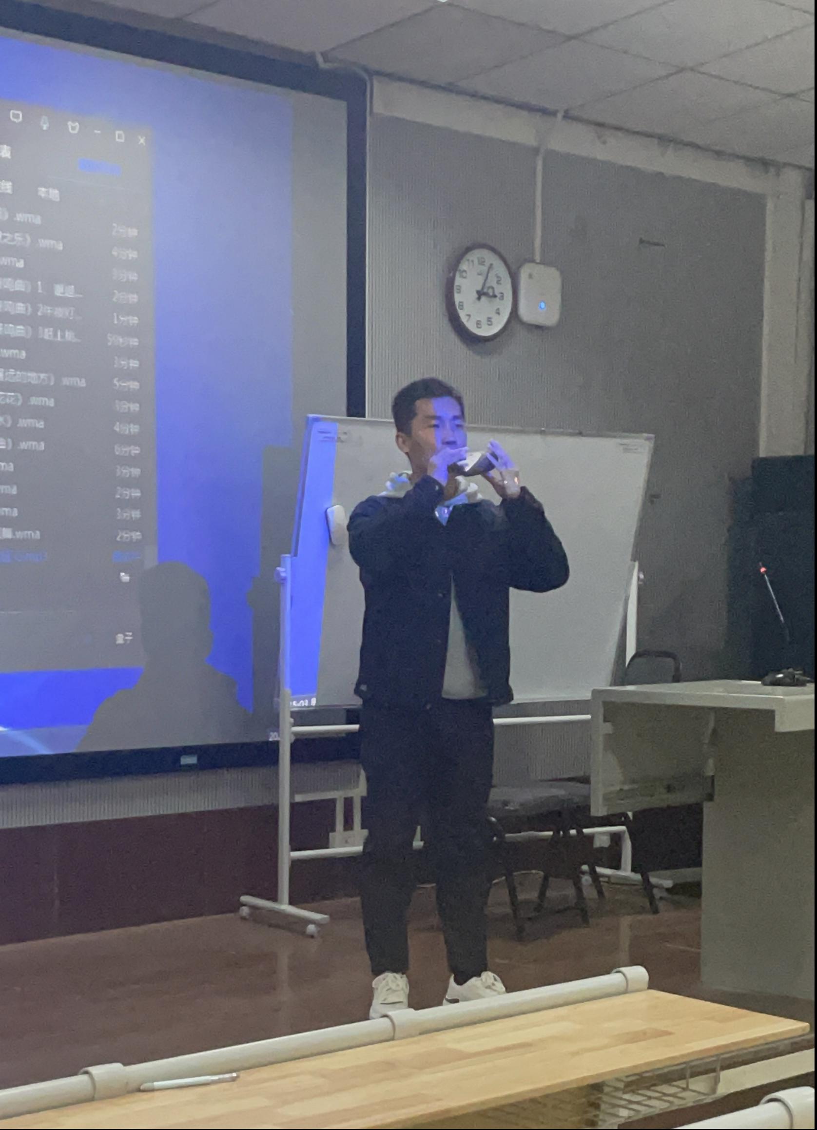 在陶笛欣赏环节,郑昊学长为同学们带来一首《为爱出征》。他评论道:前途比爱情重要,爱情也比前途更难得。真诚留给同样懂得真诚的人,温柔也要有温柔的人匹配。可以作为爱出征的勇士,只是一定要为值得的人。笛声渐落,掌声此起彼伏。丝丝入耳,回味无穷,在悠扬的笛声中,我们的活动迎来了尾声。