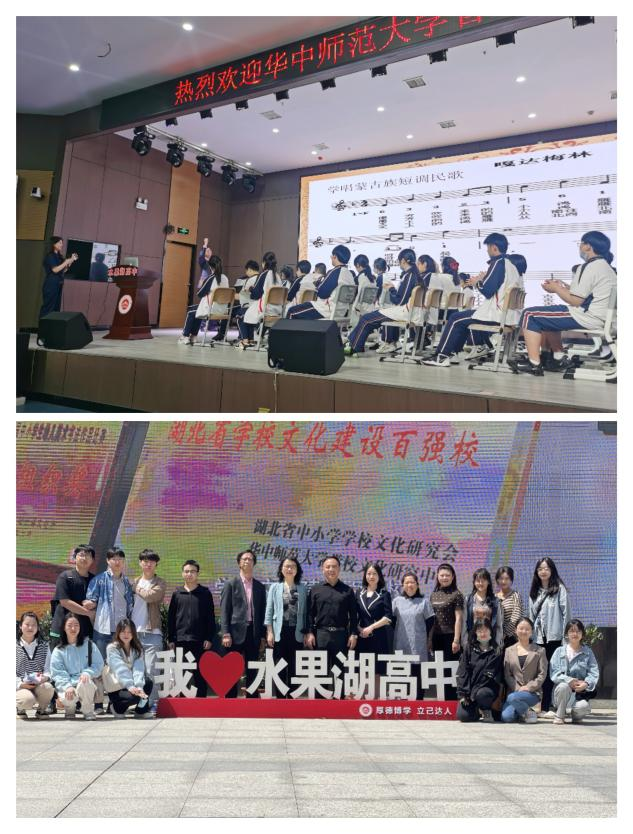为落实华中师范大学主题教育专题学习,结合音乐教育人才培养方案,进一步巩固学生教育理论知识和提高教学实践能力,搭建校外人才培养孵化的实习实践平台,以实际行动落实习近平总书记关于教育、艺术和拔尖创新人才培养的重要指示,开展走出桂子山教学见习实践活动,真正把校内课堂学习与校外教学实践紧密结合。2023年5月9日,依照音乐学院人才培养方案计划的统一部署,学院副院长詹艺虹,声乐系主任陈岭、教师杨阳博士,湖北省音乐教育实验教学示范中心副主任谭述晔一行,带领学院艺术硕士音乐教育方向研究生和音乐学本科生20余名共赴武汉市陆家街中学、湖北省水果湖高级中学、湖北省武昌实验中学沙湖学校进行高、中、小三个学段的观摩听课评课交流。武昌区教育局体卫艺中心党支部书记杨玲和音乐教研员李霞、张炜乔、杨古君共同参加。