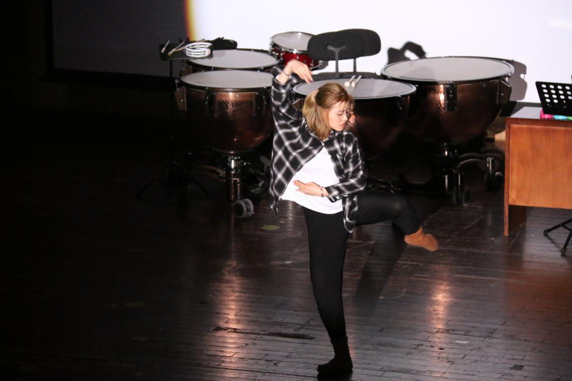 乐音间的碰撞过后,音乐和形体的碰撞则让人眼前着实一亮。在萨克斯俏皮的音色下,周倩作为特邀嘉宾,呈现出观众一支极其展现内心世界的舞蹈。乐音和形体摩擦出了完美的火花,演员所演绎作品的淋漓尽致使观众们回应以热烈的掌声。