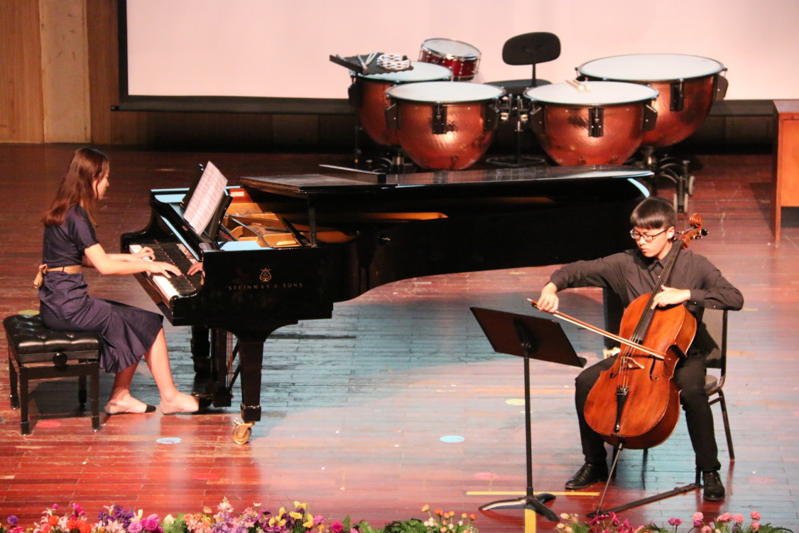 周子威,褚楚以四手联弹的形式,默契的为我们带来了德沃夏克的《g小调斯拉夫舞曲》;由樊秋雨,王婉莹带来的女声二重唱《船歌》,给予了观众们水边梦幻的体验;大提琴和钢琴的二重奏以及钢琴的四手联弹《丝路》,令我们沉醉于音符间跳跃,碰撞的世界。