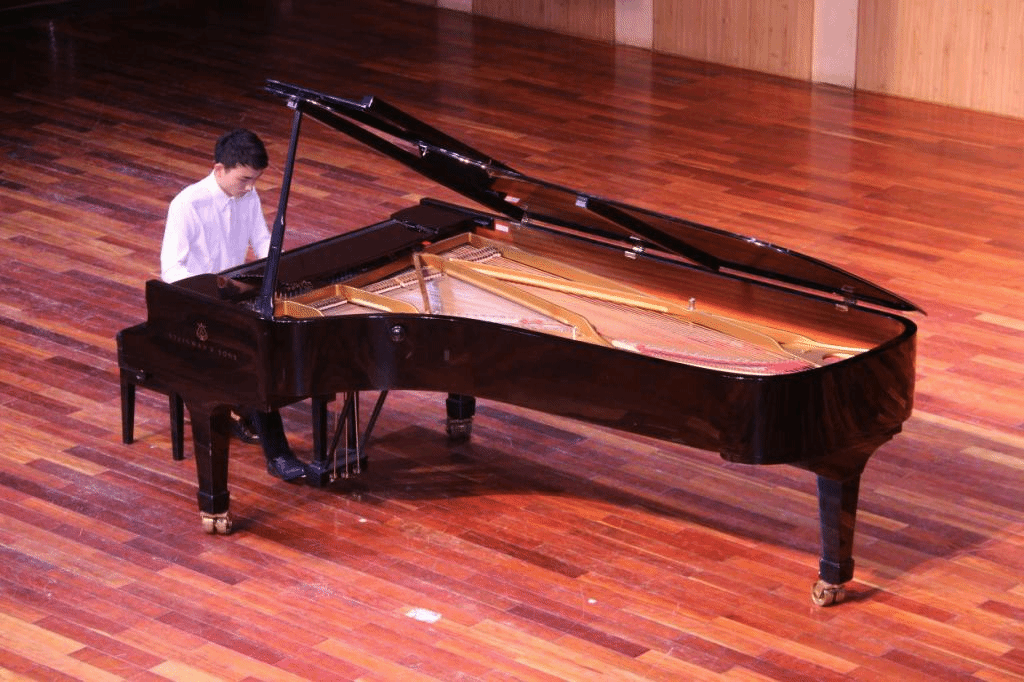 紧接着,2016级音乐学钢琴专业张雨潮同学演奏了一曲由储望华改编的民间流浪艺人瞎子阿炳所作的二胡独奏曲《二泉映月》。此曲改编成钢琴独奏曲后更是独具一格,全曲通过多声部织体在不同音区的变换,三和弦及变功能和弦等民族和声的大量使用,流露出了一位饱尝人间辛酸和痛苦的盲艺人的思绪情感。
