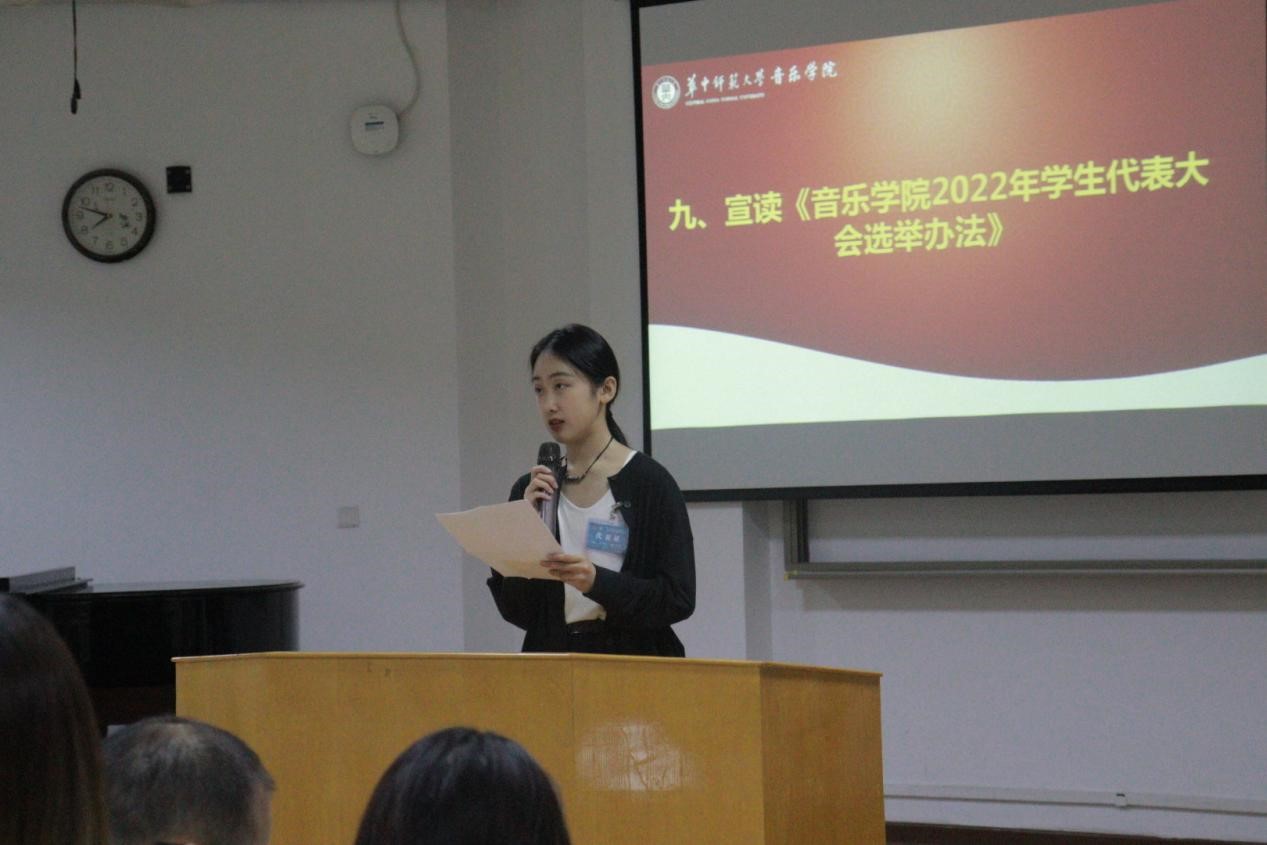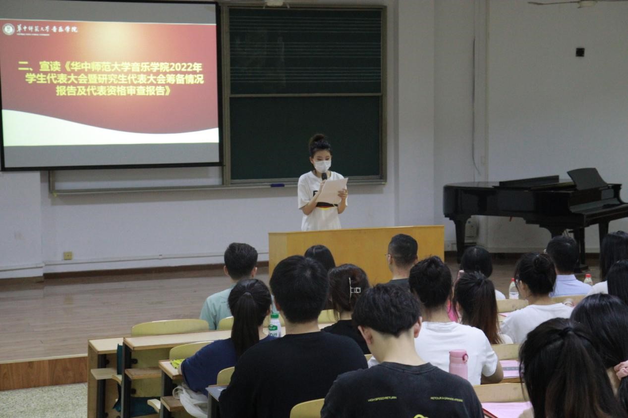 6月7号晚,音乐学院2022年学生代表大会暨研究生代表大会在427教室举行。本次会议由音乐学院学生会、研究生会主办,出席本次会议的有音乐学院党委副书记陈晓刚、团委书记付彪、华中师范大学学生会主席团成员钟文慧、政治与国际关系学院研究生会主席团成员付睿思、各级辅导员老师和学院学生会主席团及学生代表。此次会议由学院学生会主席团成员何颖主持。