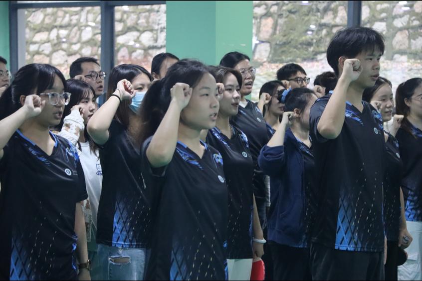 第二项:运动员代表陈欣怡致辞。陈欣怡带领运动员们进行了宣誓,号召运动员们努力拼搏,昂扬斗志,发扬自信,展现风采。