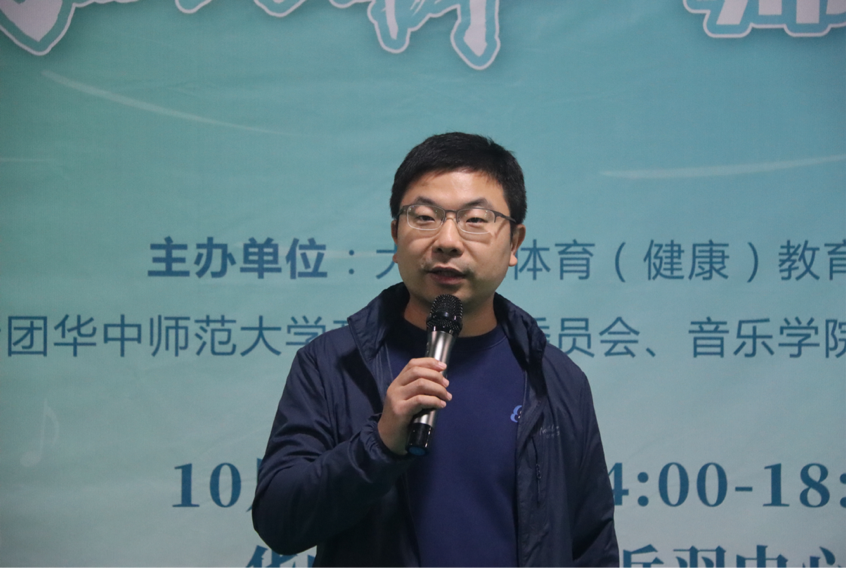 第四项:音乐学院党委副书记陈晓刚致辞并宣布开赛。陈晓刚表示,我院已连续三年举办“乐动杯”师生乒乓球赛,学院重视学生的体育健康,希望同学们通过比赛磨练意志、强健体魄、增强体育技能,并带动更多的同学参与到体育活动中,逐渐养成终身运动的健康习惯。