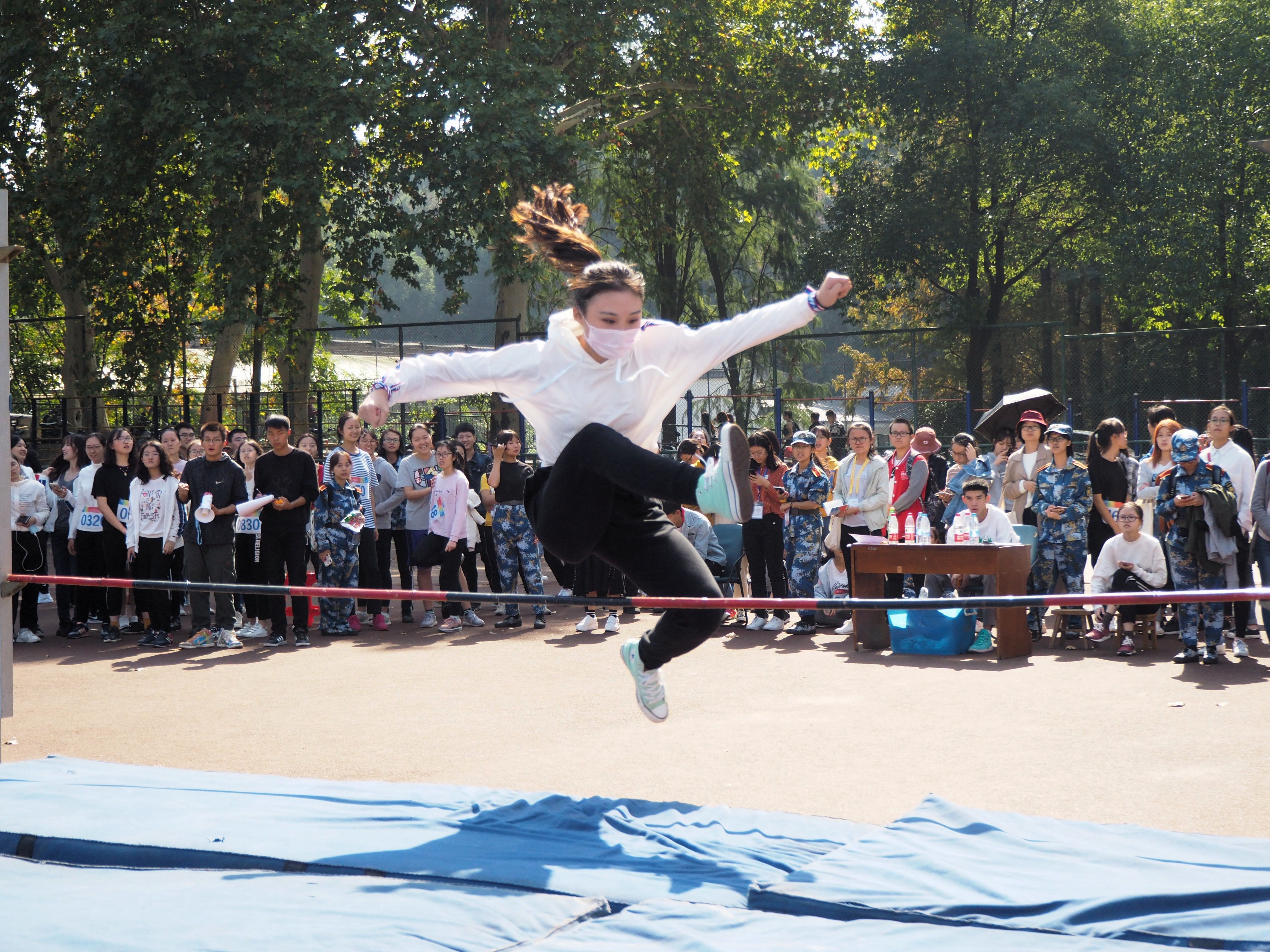 (通讯员 张萌)2018年11月1日,秋风送爽,阳光明媚。萧瑟的秋风,挡不住运动员们破竹的锐气,广阔的绿茵场,是为同学们搭建的舞台。虽然没有跑道上急速的紧张与激情,但跳高赛场上也是别样一番的精彩。轻盈的跳跃,一道弧线优美地划过跳杆;欢呼的掌声,一阵喜悦悄然地掠过人心。